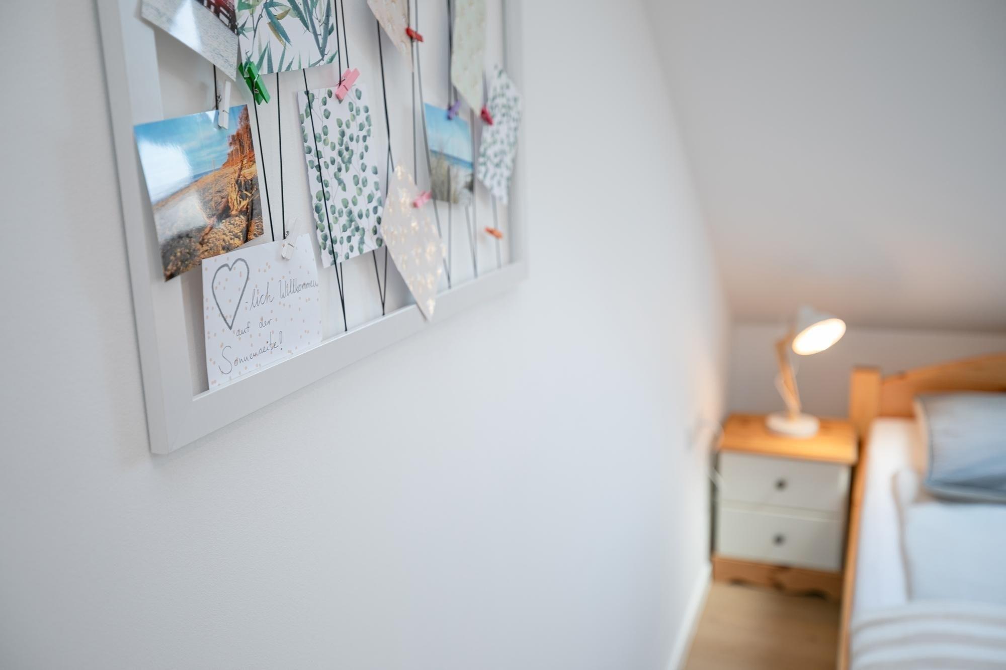 Als besonderes Highlight erhalten Sie einen Gratis-Besuch im Zoo Arche Noah in Grömitz. Öffnen Sie die Tür in Ihren Urlaub und fühlen Sie sich sofort zu Hause im großen freundlichen Esszimmer mit angrenzender Küche. Hier kommt die Familie zusammen und kann beim Essen oder Spielen wertvolle Zeit miteinander verbringen. Die moderne voll ausgestattete Küche lässt keine Wünsche offen, ein Herd mit 4 Kochfeldern und Backofen, großer Kühl-/Gefrierkombination, Spülmaschine, Kaffeemaschine, Eierkocher, Mixer, Toaster und Wasserkocher gehören zum Inventar. Im offenen lichtdurchfluteten Wohnzimmer mit gemütlicher Couchgarnitur, Kamin und TV (mit Fire-TV-Stick zur Nutzung von Netflix, Amazon Prime etc.) haben Sie Zugang zur wunderschönen 26 m² großen möblierten, überdachten Terrasse mit Garten. Diesen erreichen Sie über eine Holztreppe. Verbringen Sie behagliche Stunden mit freiem Blick auf das Feld, oder lassen Sie sich an der Feuerstelle einen selbst gegrillten, fangfrischen Ostseefisch schmecken. Das geschmackvolle Tageslicht-Bad im Erdgeschoss verfügt über eine komfortable bodentiefe Dusche, Handtuchheizung, WC, Fön und Waschmaschine. Im Obergeschoss mit Dachschrägen befindet sich ein Schlafzimmer mit bequemem Doppelbett (2x 90x200 cm) und Kleiderschrank, sowie ein zweites Schlafzimmer mit 2 Einzelbetten (je 90x200 cm) und kleinem Kleiderschrank für die Urlaubsgarderobe. Die Velux-Fenster lassen sich zur Nachtruhe jeweils mit einem Rollo verdunkeln.