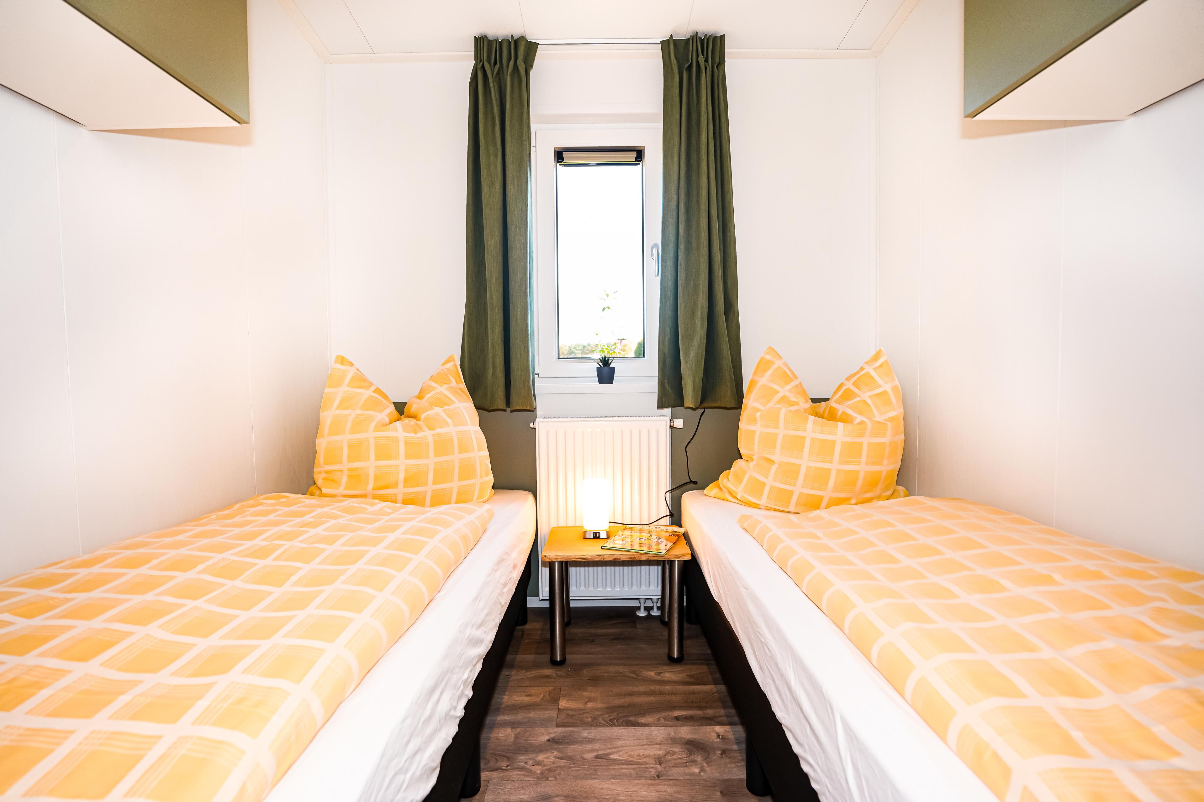 Diese gemütlichen Unterkünfte bieten Platz für bis zu 4 Personen und sind perfekt für einen entspannten Urlaub. Jedes Mobilheim verfügt über eine voll ausgestattete Küche mit Gasherd und Mikrowelle, Kühl- und Gefrierkombination, Geschirrspüler, Kaffeemaschine und Wasserkocher. Ein modernes Badezimmer mit Dusche, WC und Waschtisch sowie zwei einladende Schlafzimmer (ein Doppelbett 2x80x200cm und zwei Einzelbetten 80x200cm) sorgen für Ihren Komfort.