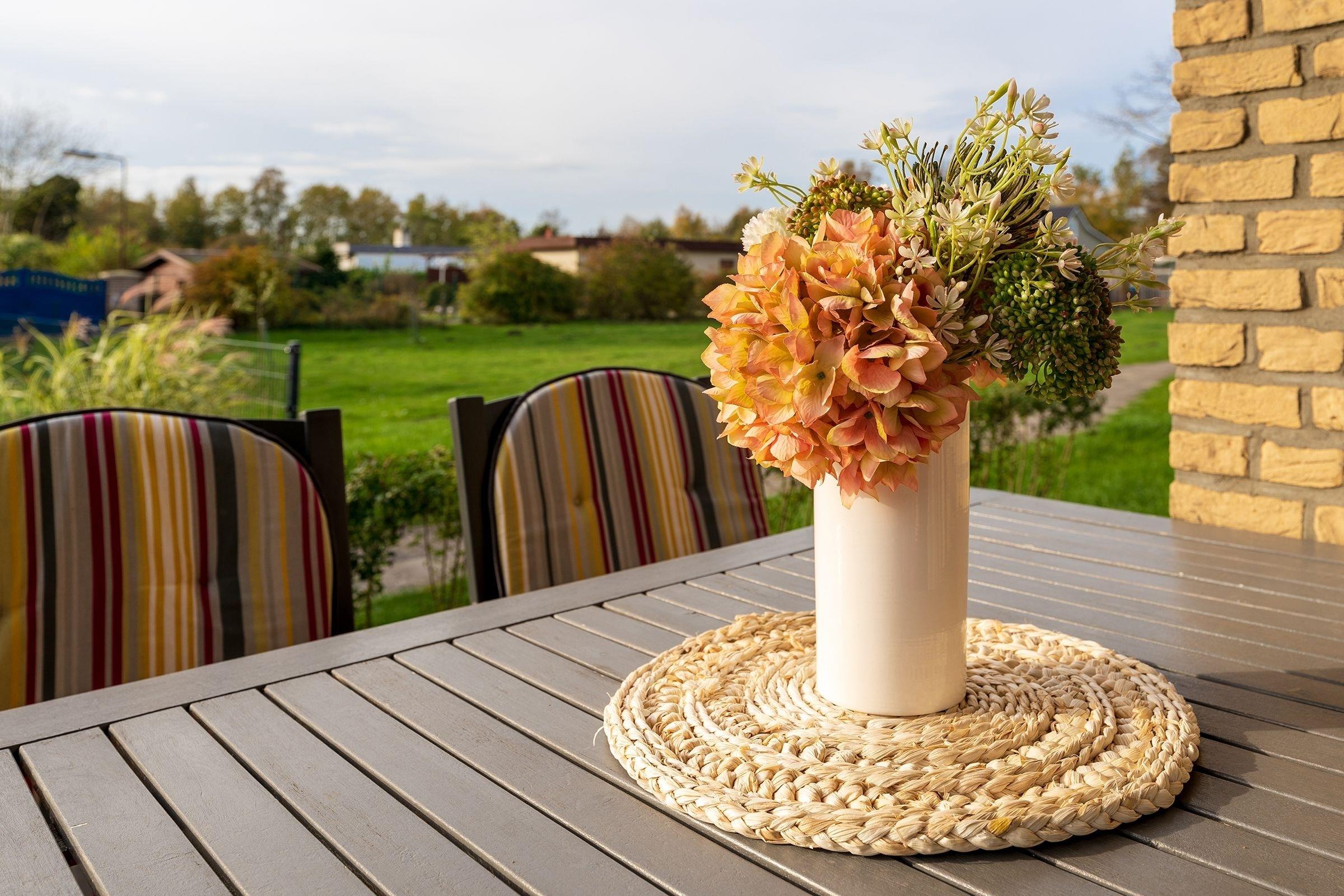Gemütlicher Ferienbungalow in Lensterstrand, nur wenige Meter von der Ostsee entfernt, mit Terrasse und Gemeinschaftsgarten.