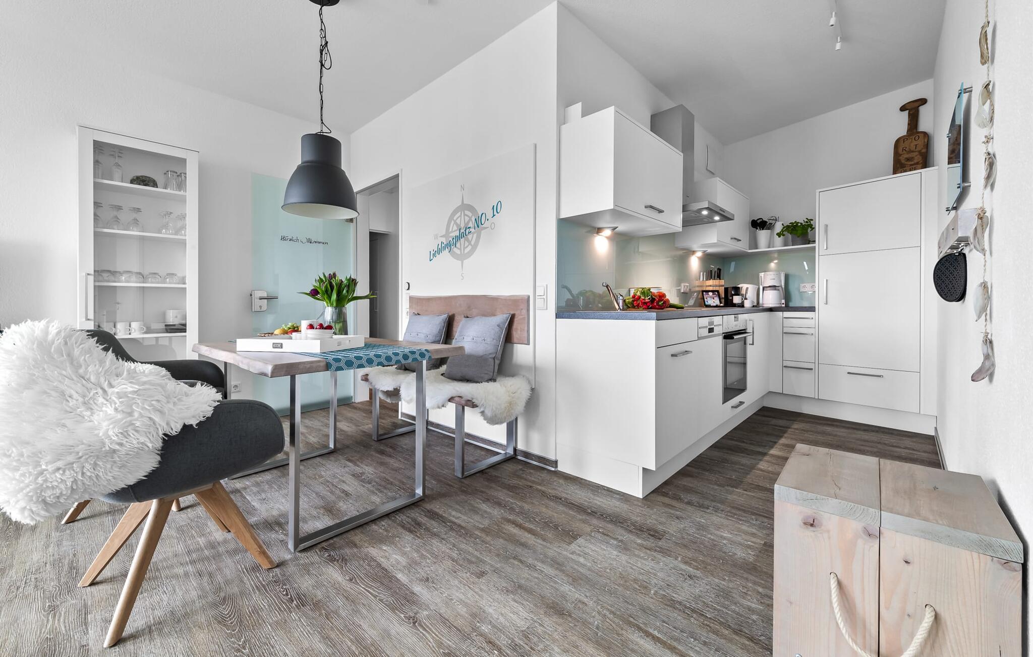 Lieblingsplatz No. 10 bietet Platz für bis zu sechs Personen und empfängt euch mit zwei gemütlichen Schlafzimmern, ausgestattet mit komfortablen Doppelboxspringbetten und Smart-TVs. Die Couch im Wohnzimmer mit einem einladenden Longchair lässt sich in ein zusätzliches Doppelbett verwandeln, perfekt für entspannte Nächte. Der Essplatz für sechs Personen im Wohnzimmer schafft eine harmonische Atmosphäre für gemeinsame Mahlzeiten.