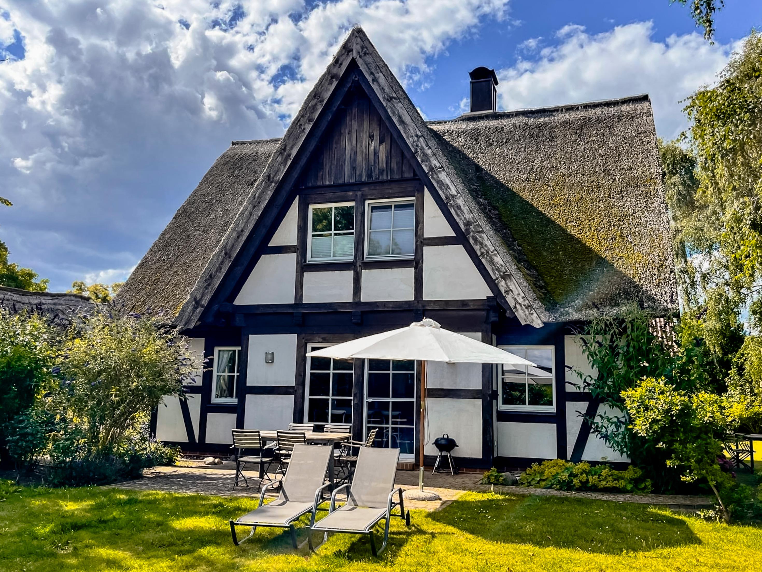 Großzügige Wohnfläche: Das Reetdachhaus besticht durch eine anspruchsvolle Ausstattung und bietet viel Raum für gemeinsame Stunden und Rückzugsorte.
