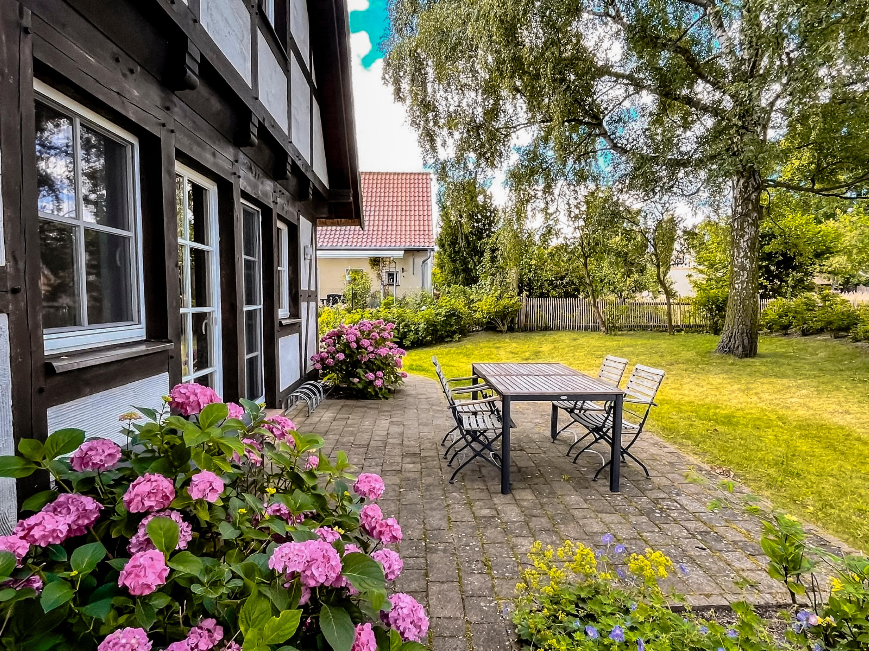 Willkommen im Ferienhaus Flieder, Ihrem idyllischen Rückzugsort auf der Halbinsel Lieper Winkel auf Usedom. Dieses charmante Fachwerkhaus mit Kamin uns Sauna im gehobenen Landhausstil kombiniert Komfort und Behaglichkeit und bietet auf großzügigen Wohnflächen Platz für bis zu 9 Personen. Mit einem liebevoll angelegten Bauerngarten und einem komplett umzäunten Grundstück ist das Ferienhaus perfekt für Familien, Freundesgruppen und Hundehalter geeignet.