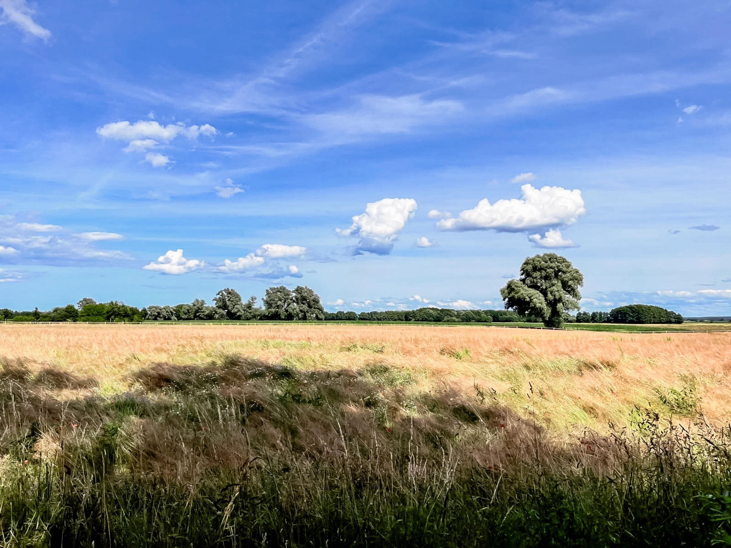 Idyllische Lage: Umgeben von Wiesen und Feldern mit weitem Blick ins Grüne – ideal für Ruhe und naturnahe Erholung.