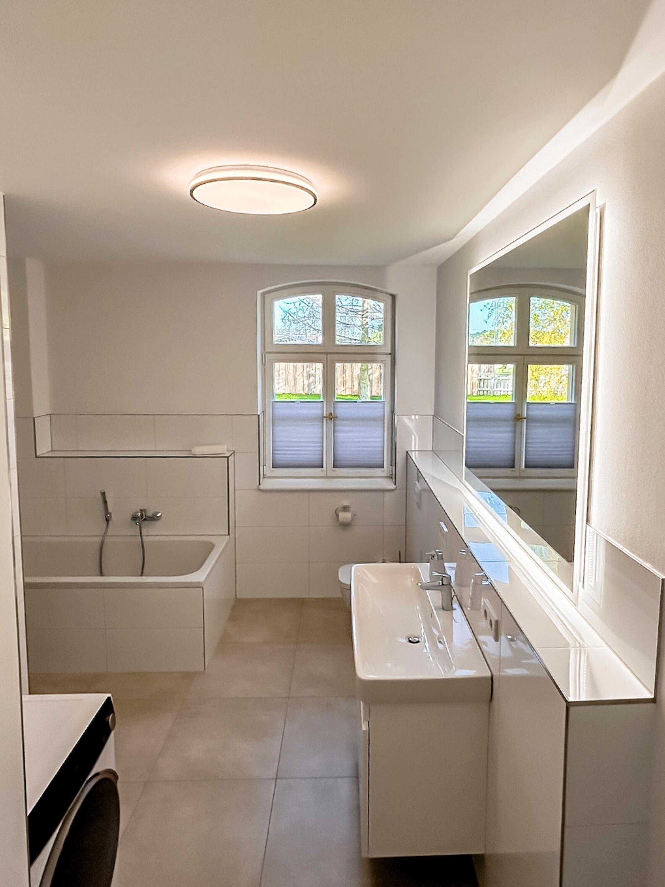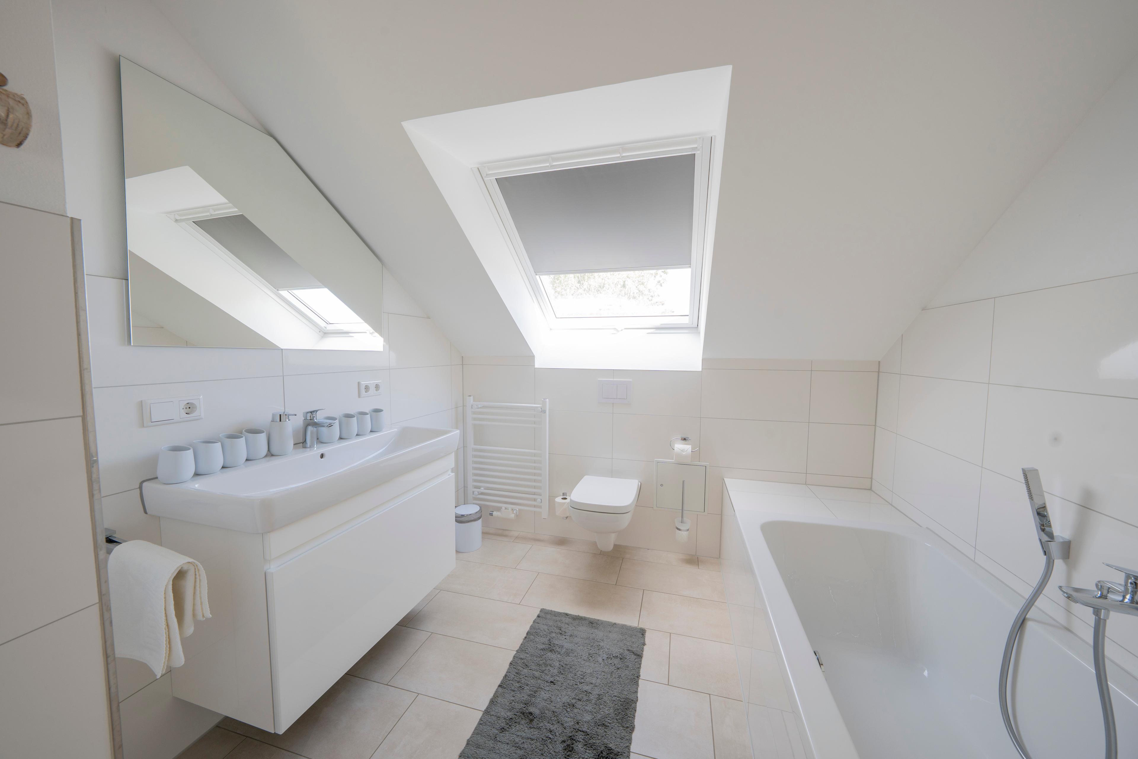 Modernes Bad mit Dusche, Badewanne + Gäste-WC