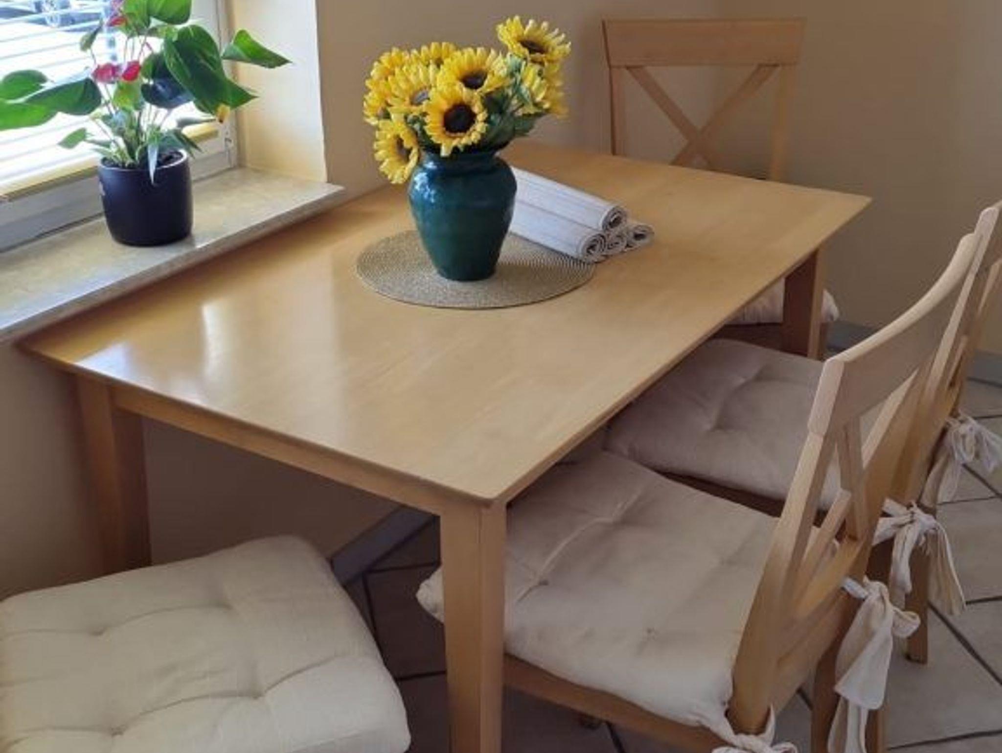 Die ca. 45 m² große Wohnung im Obergeschoss für bis zu 4 Personen verfügt über einen WLAN-Zugang, ist mit allen Annehmlichkeiten ausgestattet und durch Fußbodenheizung ganzjährig beheizbar. Zusätzlich gehört zur Wohnung ein großer Garten mit Grillplatz für einen schönen Grillabend. Die Küche hält alles für den Urlaub bereit, Kaffeemaschine, Wasserkocher, Toaster, Mikrowelle, Ceranherd, Spülmaschine sowie Kühlschrank. Die Wohnung verfügt über 1 Schlafzimmer mit einem großen Doppelbett. Das Badezimmer ist mit Fön, Handtüchern und Dusche ausgestattet. Das Wohnzimmer verfügt über einen Flachbildfernseher mit Sat-TV und einem XXL-Schlafsofa. Für die Grillparty steht der Grill bereit, der Garten mit Pavillon bietet zusätzlichen Platz und hat ausreichend Bestuhlung für 4 Gäste. Natürlich gibt es zu der Ferienwohnung auch kostenfreie Parkplätze.