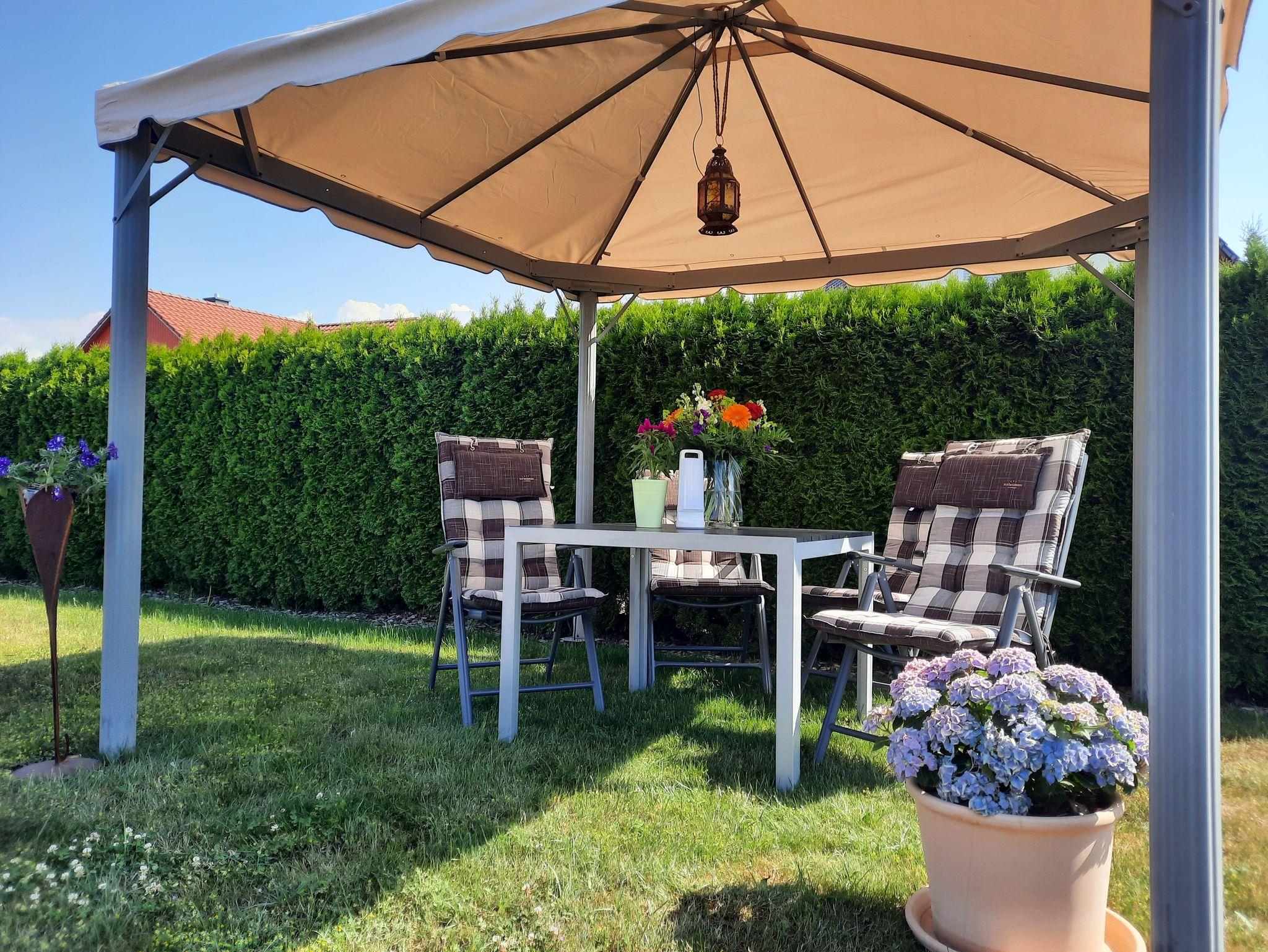 Gemütliche Suite Holiday im Obergeschoss eines Einfamilienhauses mit moderner Ausstattung und Gartenmöbeln.