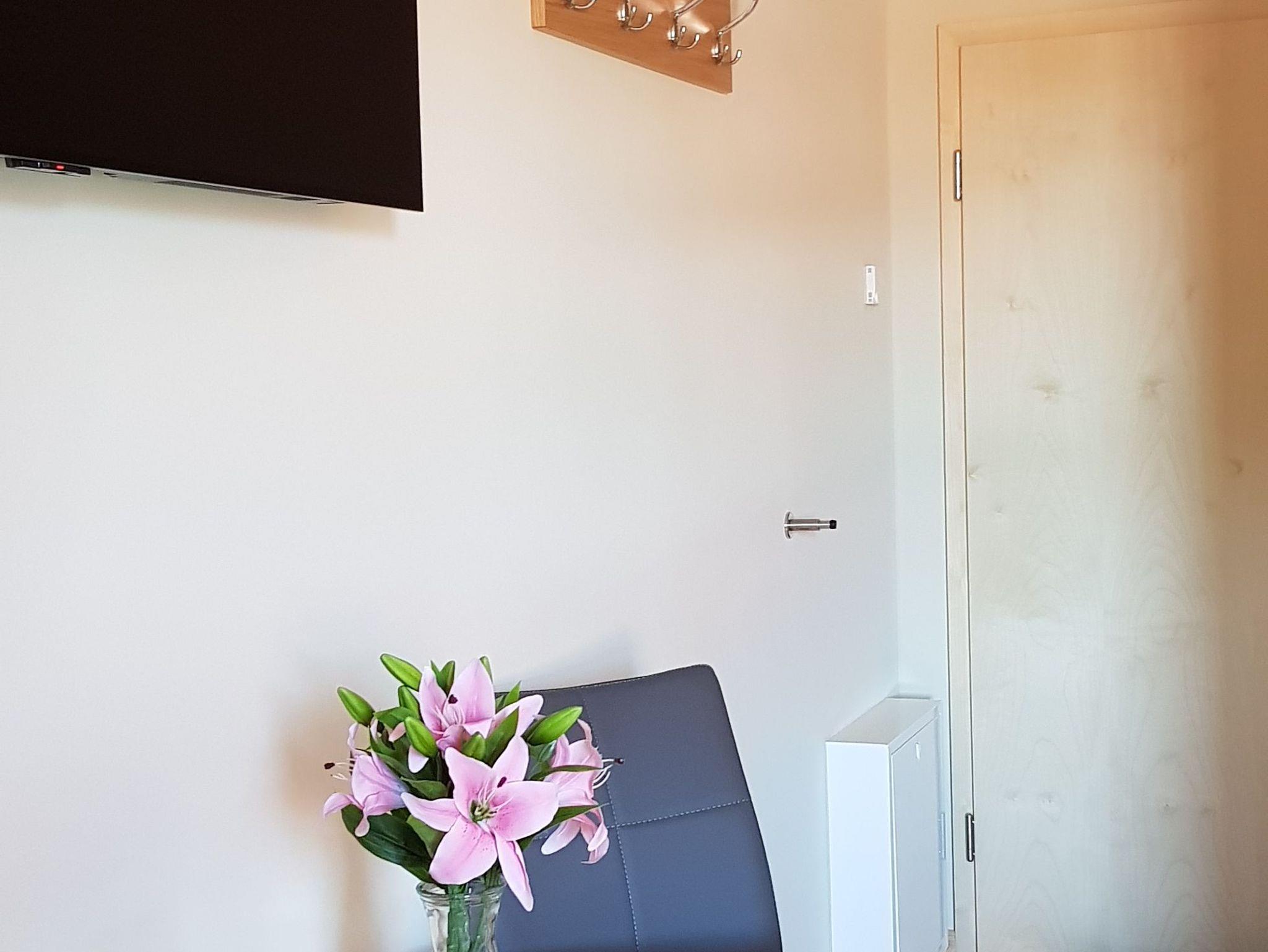 Die Suite Holiday ist gemütlich und komfortabel eingerichtet. Die 18 m² große Suite befindet sich im Obergeschoss eines Einfamilienhauses. Ausgestattet ist sie für 2 Personen. Das Zimmer verfügt über ein großes bequemes Doppelbett, Kleiderschrank, Essbereich sowie Bad mit Du/WC. Ihren Pkw können Sie auf hauseigenen Parkplätzen abstellen. Es gibt Fußbodenheizung, eine Grillmöglichkeit und Gartenmöbel.