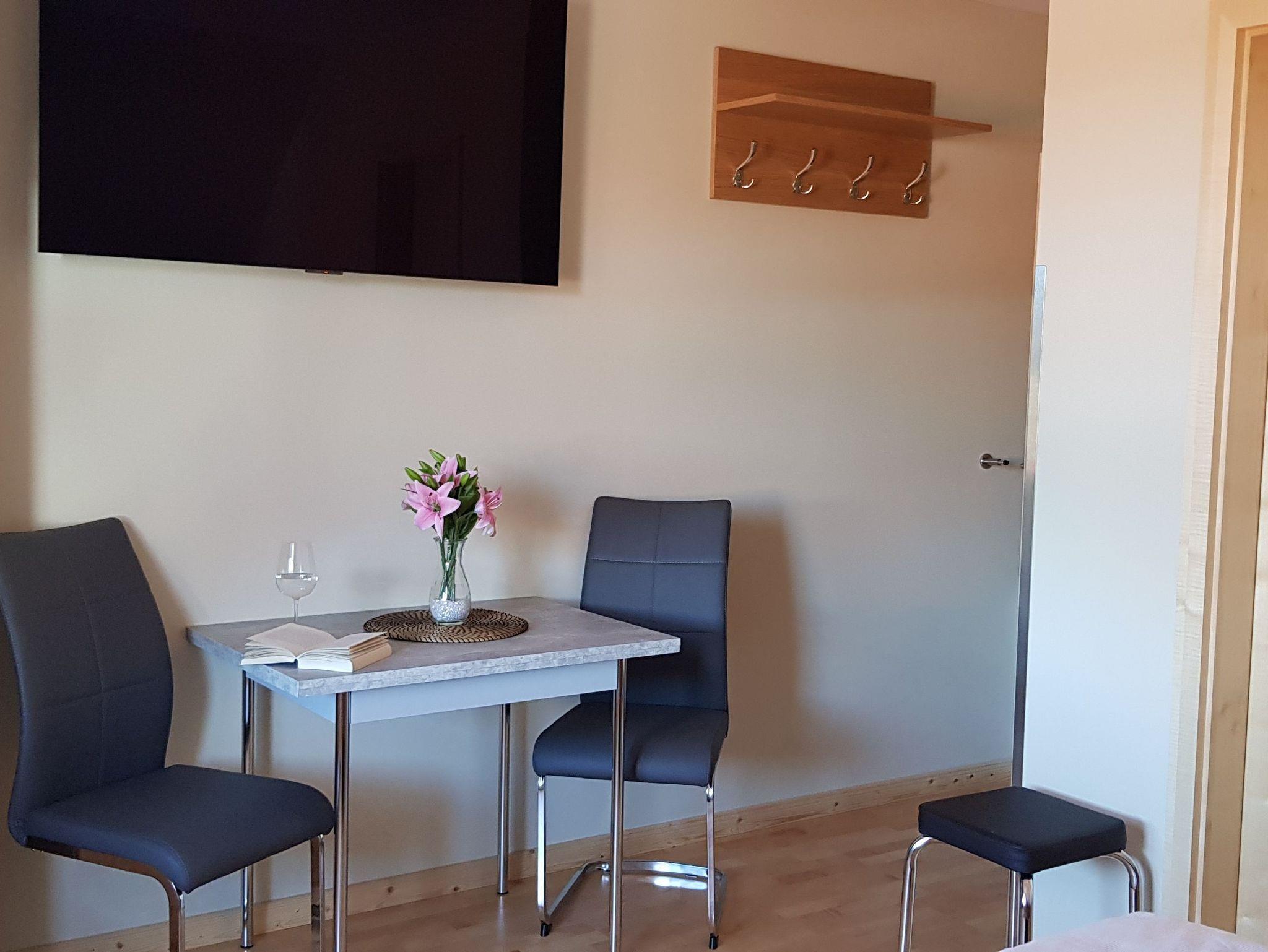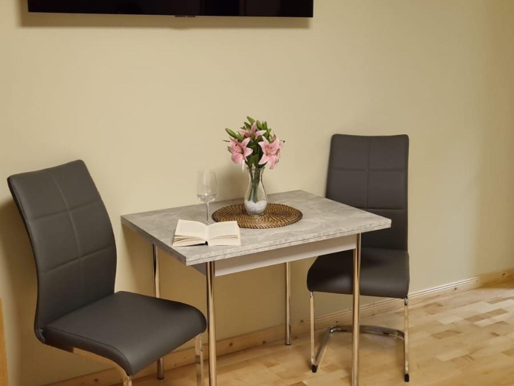Die Suite Kleine Auszeit ist gemütlich, mordern und komfortabel eingerichtet. Die 18 m² große Suite befindet sich im Obergeschoss eines Einfamilienhauses. Ausgestattet ist sie für 2 Personen. Das Zimmer verfügt über ein großes Doppelbett, Kleiderschrank, Essbereich sowie Bad mit Du/WC. Ihren Pkw können Sie auf hauseigenen Parkplätzen abstellen. Es gibt Fußbodenheizung, eine Grillmöglichkeit und Gartenmöbel.