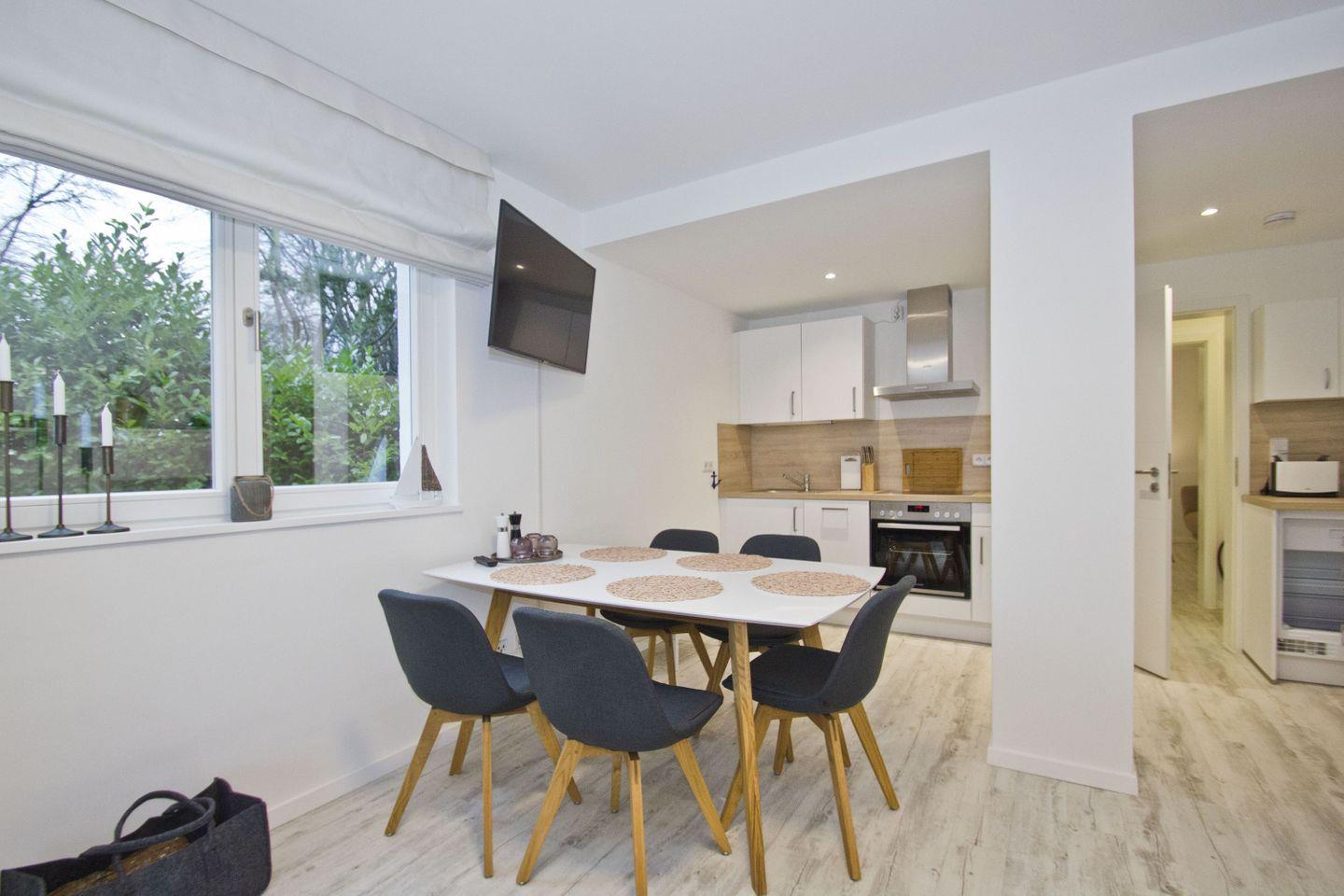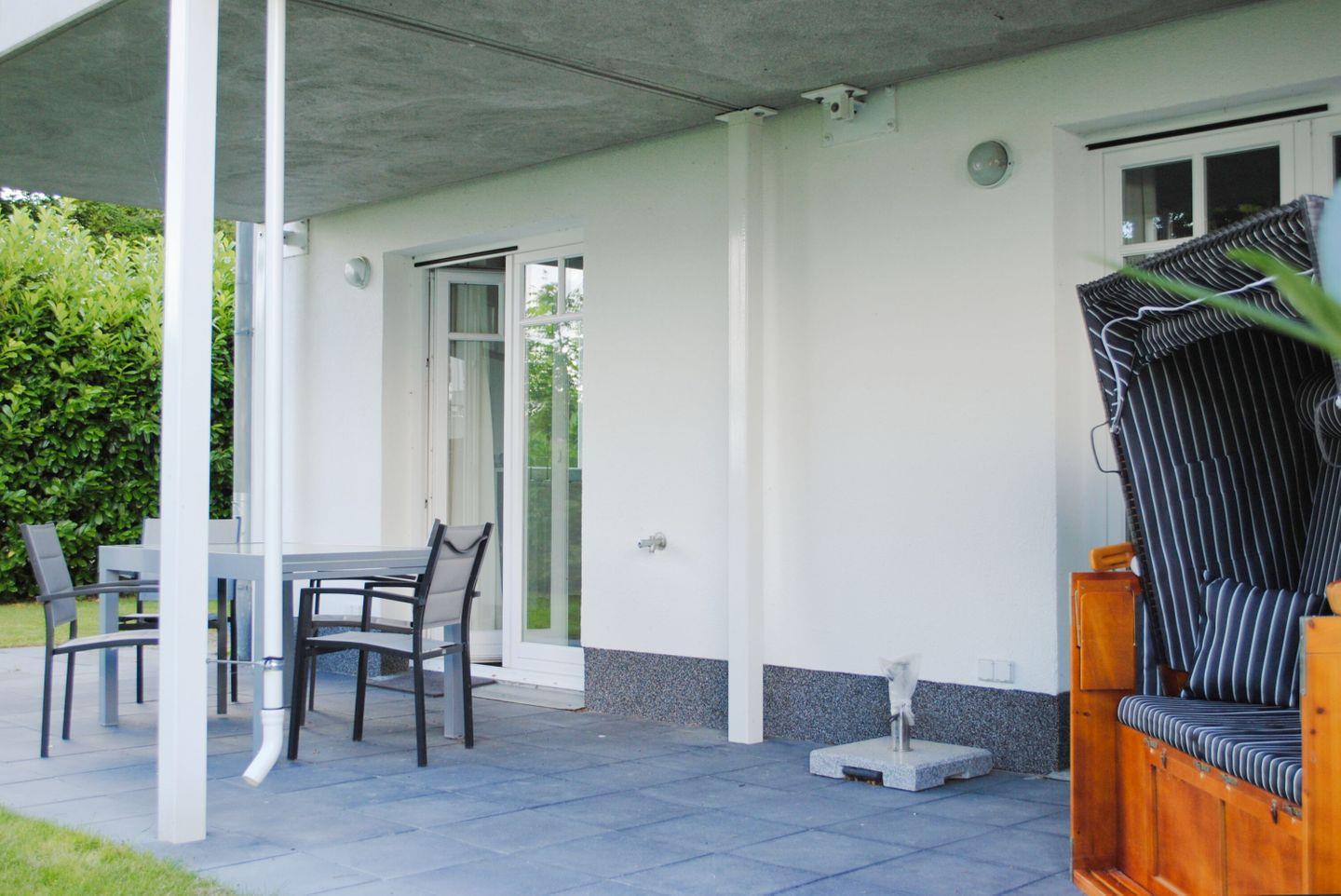 Moderne Ferienwohnung mit Terrasse, Kamin und Sauna in Lietzow auf Rügen, nahe Bodden und Strand.