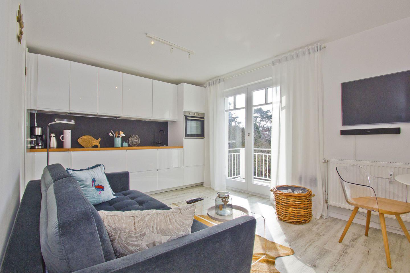 Moderne 2-Raum-Ferienwohnung mit Balkon und eingeschränktem Meerblick in Lietzow auf Rügen.