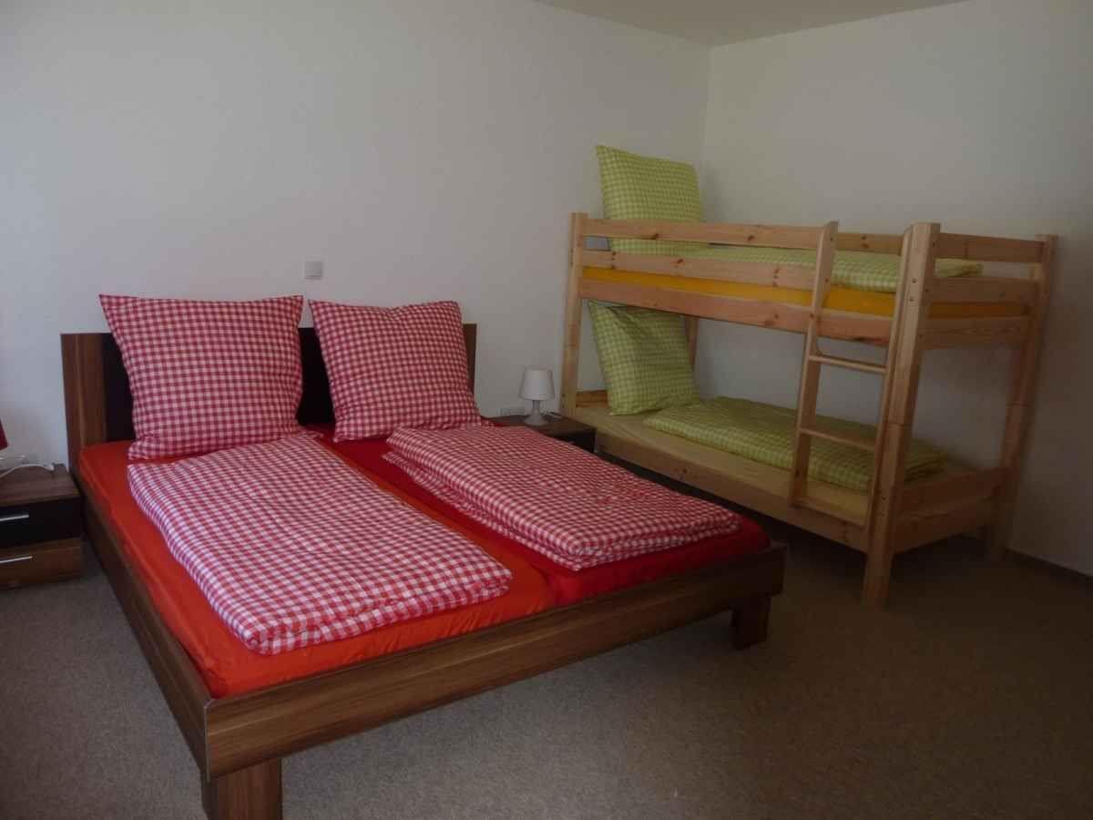 Schlafzimmer 1: Doppelbett 180x200 cm + Etagenbett 90x200 cm