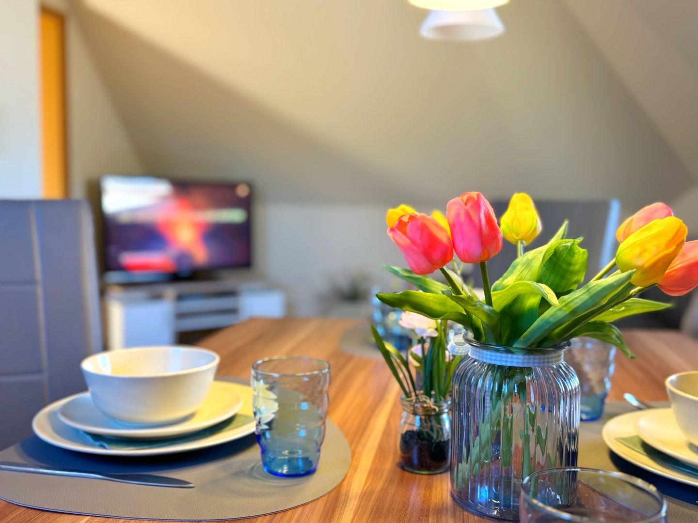 Wohnung 5 – 1. Obergeschoß, 50 qm Wohnfläche, bis 3 Personen, 1 SZ, Gartenblick, komfortabel-moderne Ausstattung