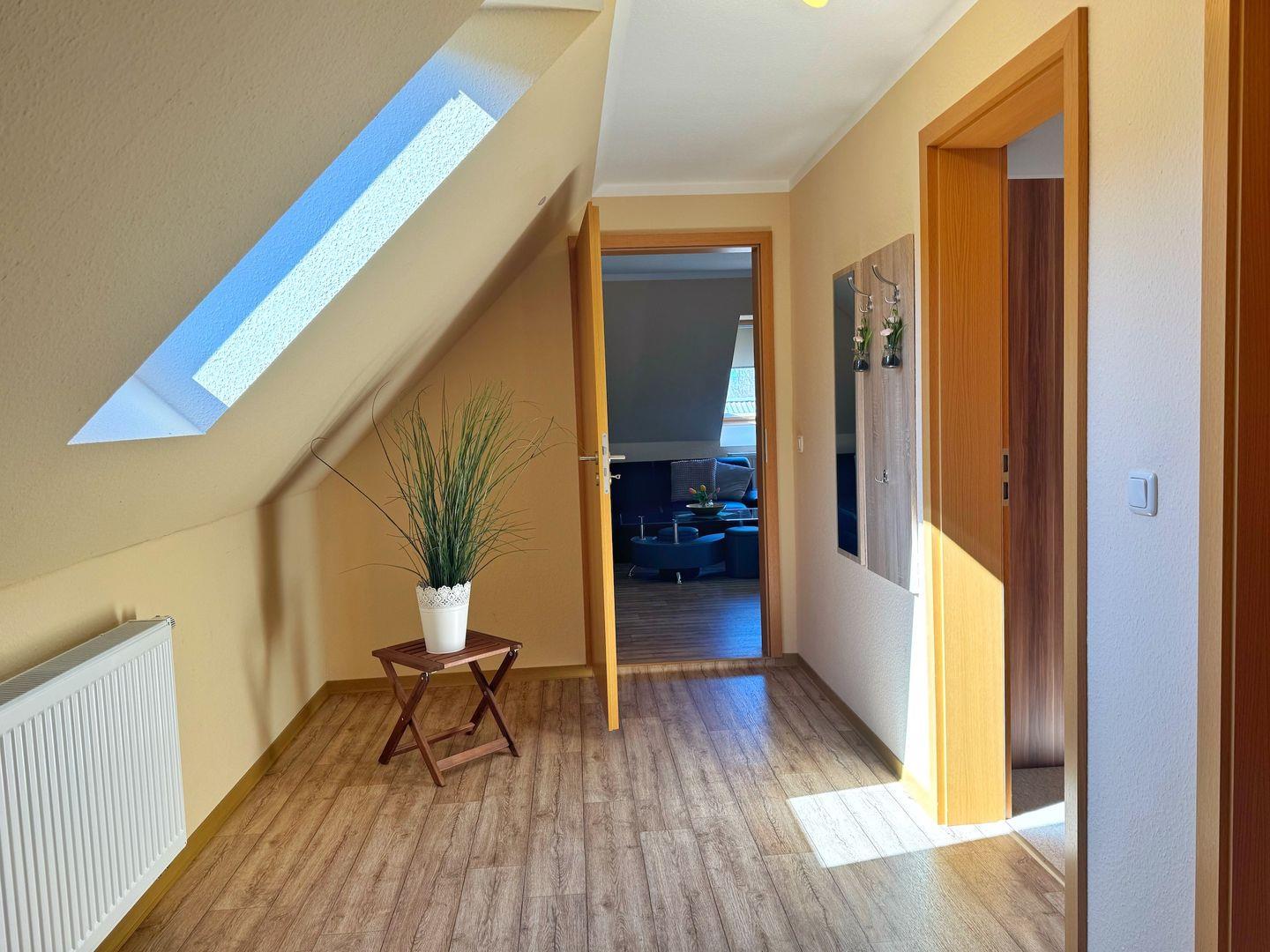 Im Obergeschoß befinden sich zwei weitere, separate Ferienwohnungen mit einer Wohnfläche von 50 bzw. 75 m². Die größere Wohnung ist für 4-6 Personen ausgestattet, die kleinere Wohnung bietet Platz für 2-3 Personen.