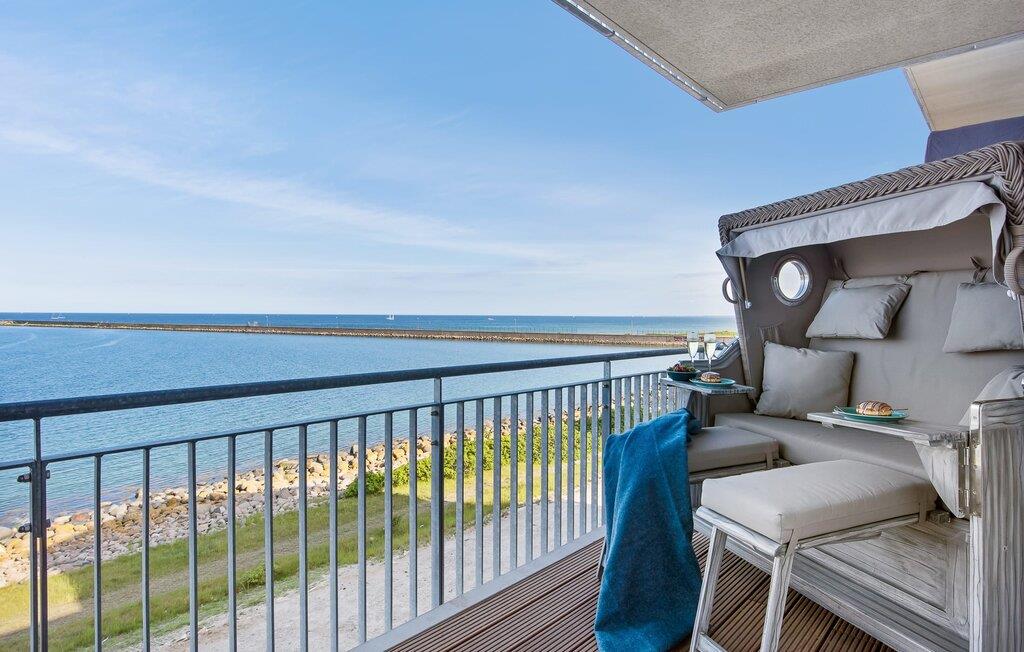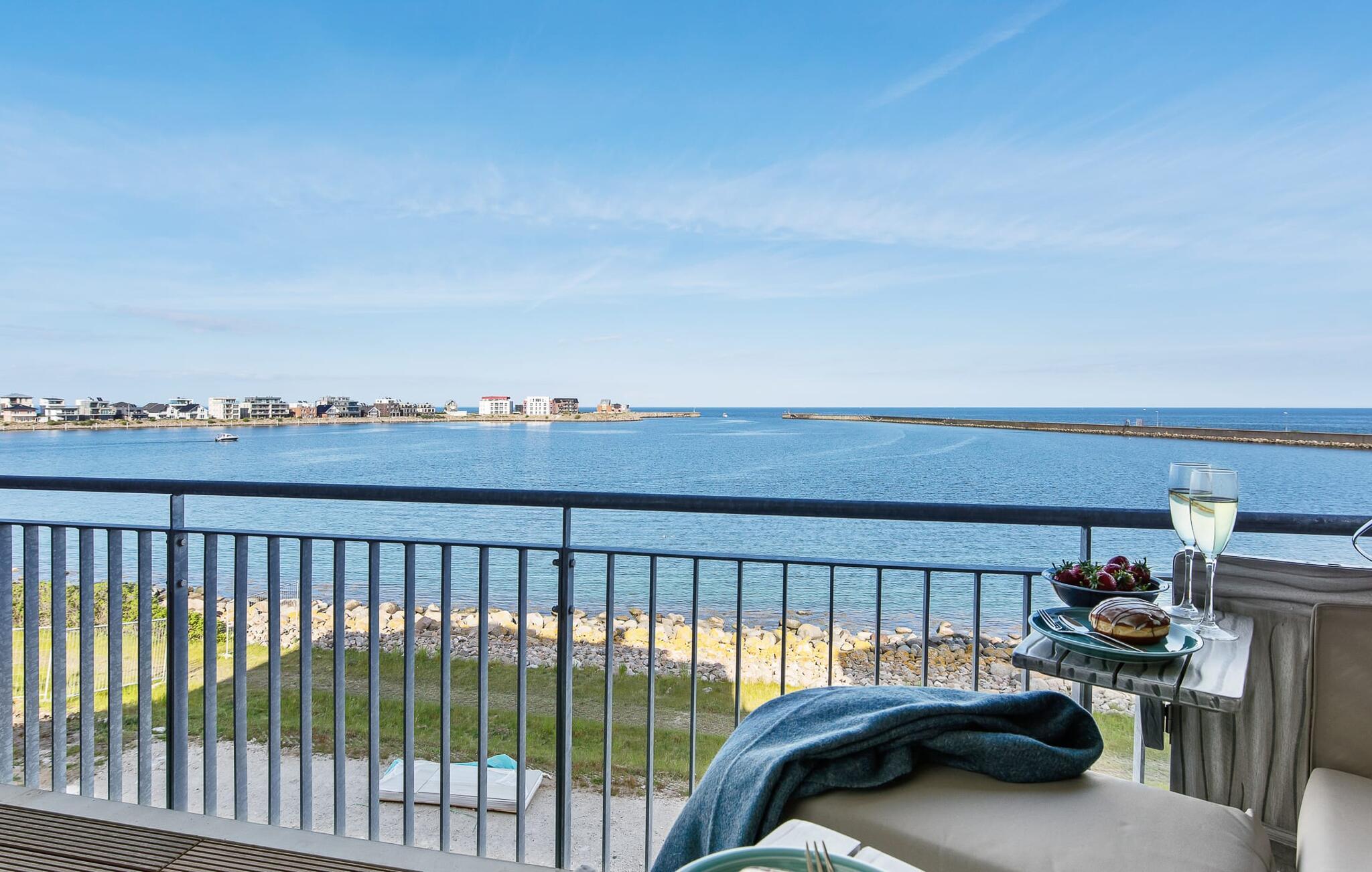 Der Blick fällt aus dem Wohnbereich und dem Hauptschlafzimmer durch bodentiefe Fenster und vom Balkon aus auf die Weite des Meeres. Bei gutem Wetter ist der Blick bis zu den dänischen Inseln möglich.