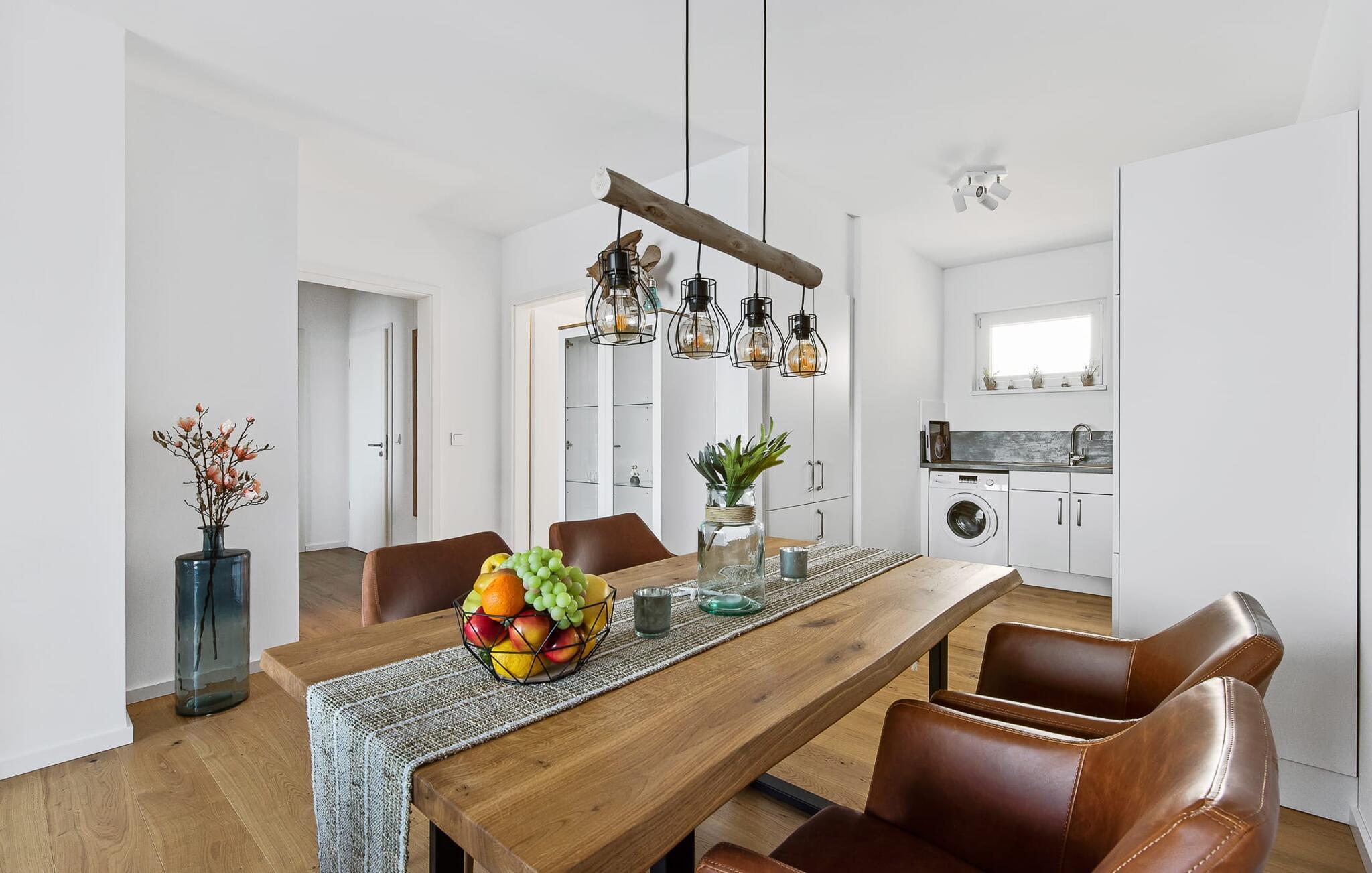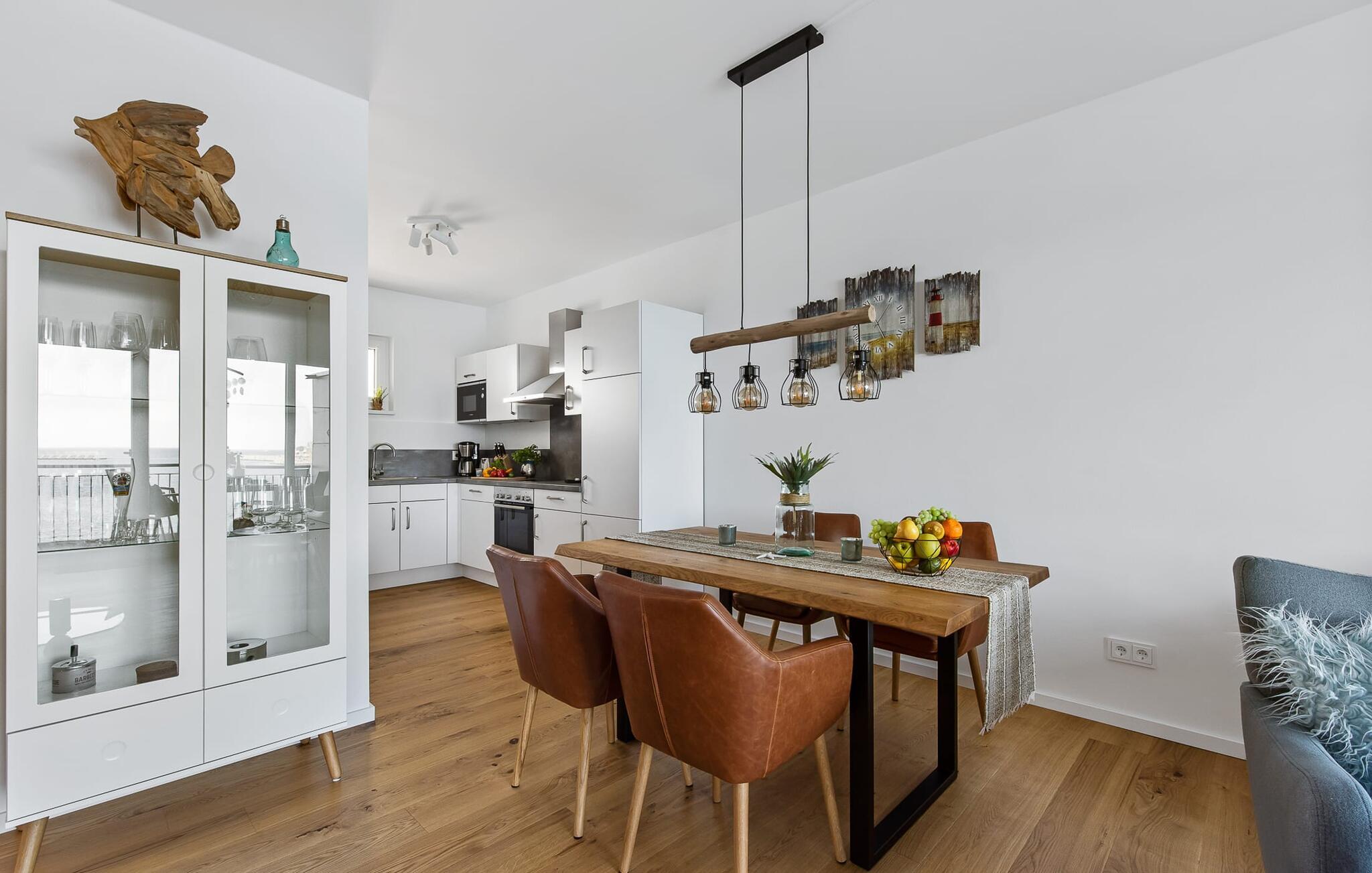 Urlaub ist Zeit, um mal wieder Kreativität am Herd walten zu lassen. Die rundum ausgestattete, offene Küche lässt keine Wünsche offen. Hier lassen sich köstliche Urlaubsmahlzeiten zaubern und der Balkon lädt zu einem Grillabend bei Wasserblick ein.