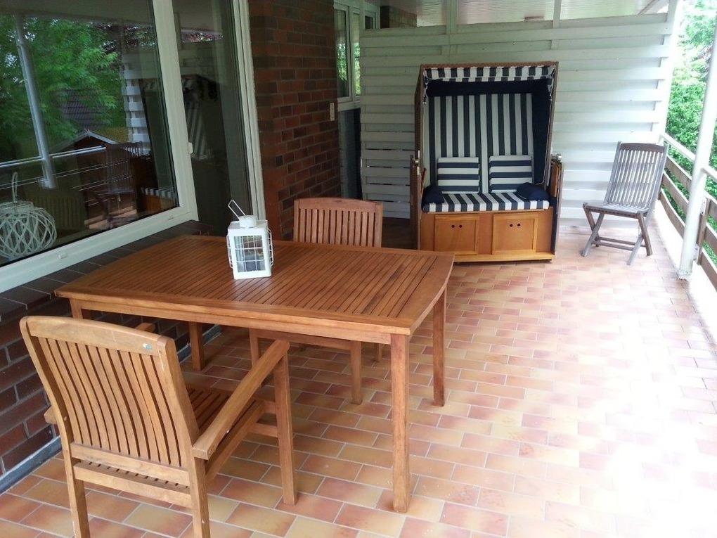 Unsere beiden Ferienwohnungen sind modern und gemütlich eingerichtet und beide Wohnungen verfügen über eine schöne große überdachte Terrasse mit einem Strandkorb und Sitzmöbeln sowie einem Gasgrill. Die Wohnungen befinden sich im Erdgeschoss /Hochparterre (5 Stufen). Pro Wohnung steht ein PKW-Stellplatz vor dem Haus zur Verfügung. Hinten im Garten befindet sich ein Fahrradhaus, in dem man bequem die Räder unterstellen und E-Bikes aufladen kann. Im Keller des Hauses befinden sich eine Waschmaschine und ein Trockner (Nutzung gegen Entgeld).