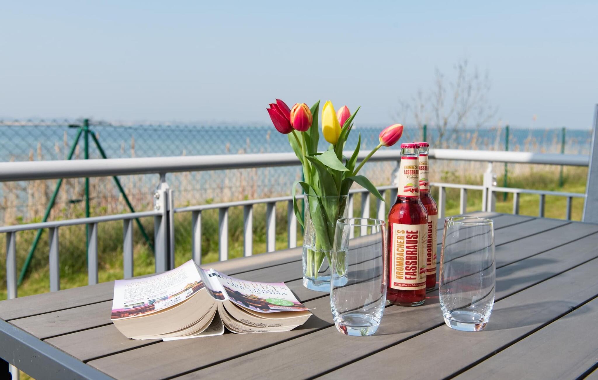 Ein weiteres Highlight ist die 25 m² große Dachterrasse, die einen Rundumblick auf die Schlei, ihre Mündung in die Ostsee und den Hafen des Resorts bietet. Hier können Sie die Sonne in vollen Zügen genießen. Dieses Ferienhaus zeichnet sich durch einen sauberen, zeitgemäßen Einrichtungsstil aus. Klare Formen und gedeckte Farben werden durch Shabby-Chic-Elemente und einzelne Farbakzente unterbrochen und sorgen für die perfekte Balance. In diesem Ferienhaus ist weniger mehr.
