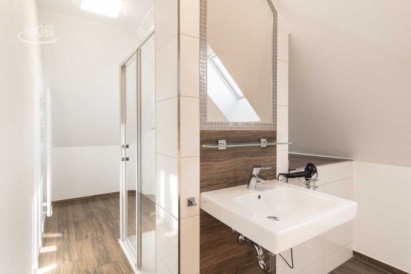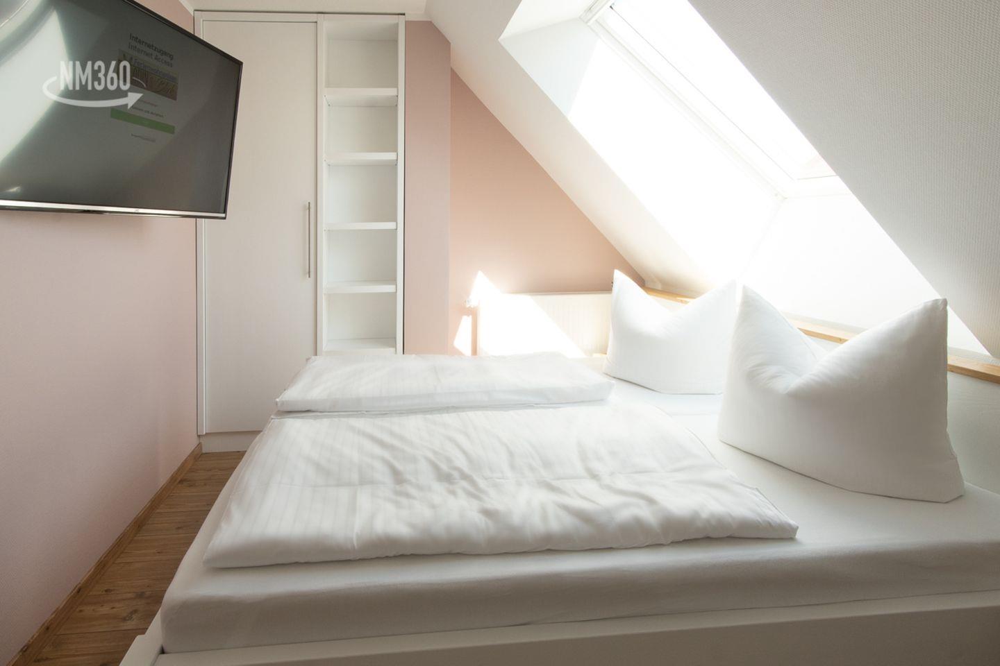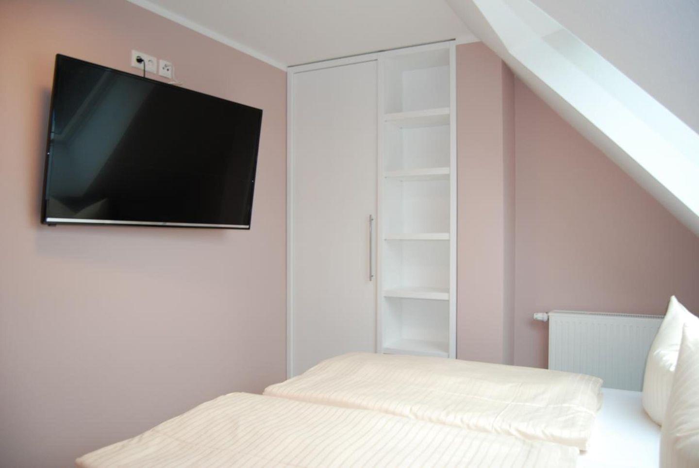Die Suite BRAGI verfügt über zwei komfortable Schlafzimmer, die mit hochwertigen Laminatboden ausgestattet sind, sowie über zwei stilvolle Badezimmer, die jeweils mit einer bodengleichen Dusche und modernem Komfort überzeugen. Das einladende Wohnzimmer ist der perfekte Ort, um entspannte Stunden zu verbringen. Hier finden Sie eine gemütliche Sofaecke, einen Esstisch für gemeinsame Mahlzeiten und einen Fernseher für unterhaltsame Abende. Das große Fenster sorgt für lichtdurchflutete Räume, in denen Sie sich sofort wohlfühlen werden.