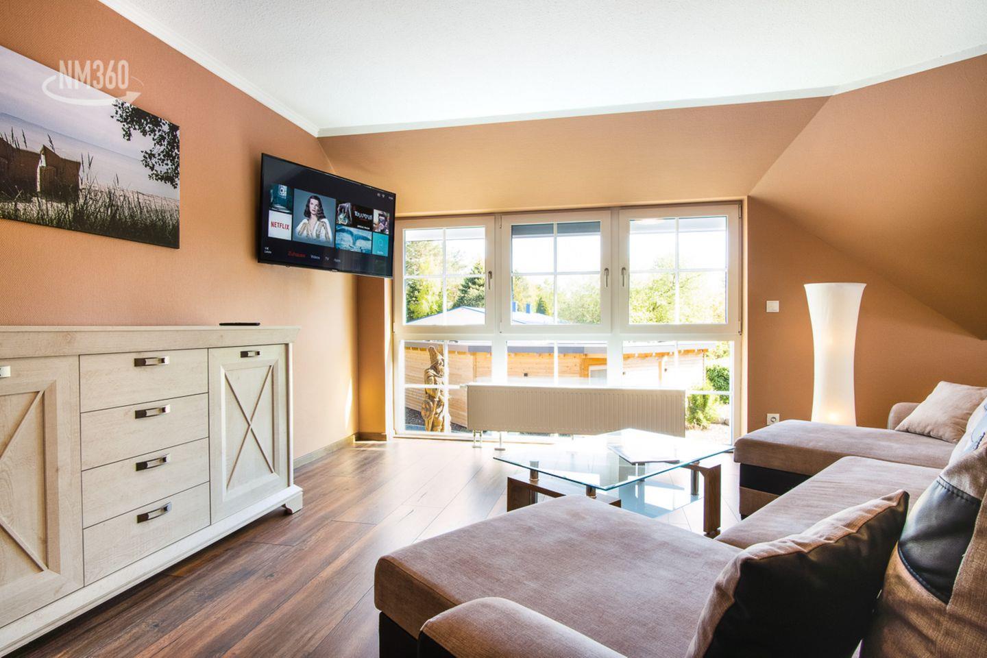 Modernes Maisonette-Apartment mit Sauna, Garten und Privatstrand in Lobbe.