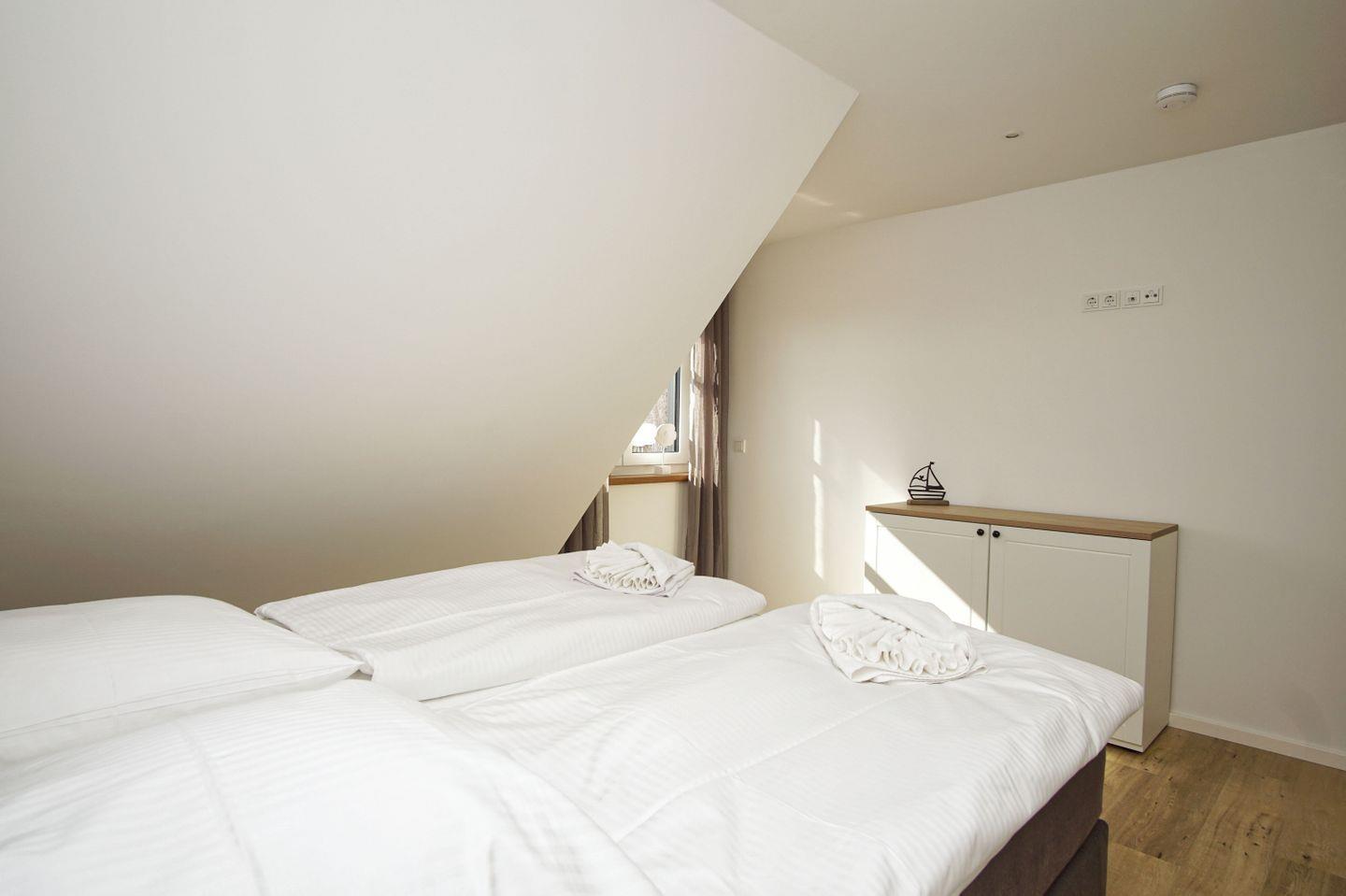 SCHLAFEN // im ersten OG zwei Schlafzimmer mit jeweils einem Doppelbett (ein Schlafzimmer mit zusätzlichem Flachbild-TV), ein Schlafzimmer mit zwei Einzelbetten, im DG offenes Schlafzimmer mit Doppelbett und Panoramafenster im Giebel ++
