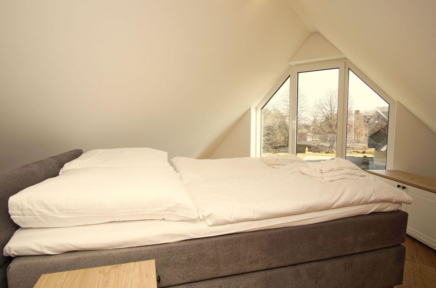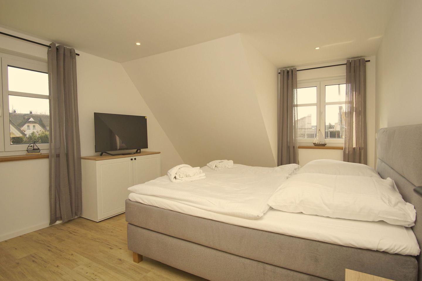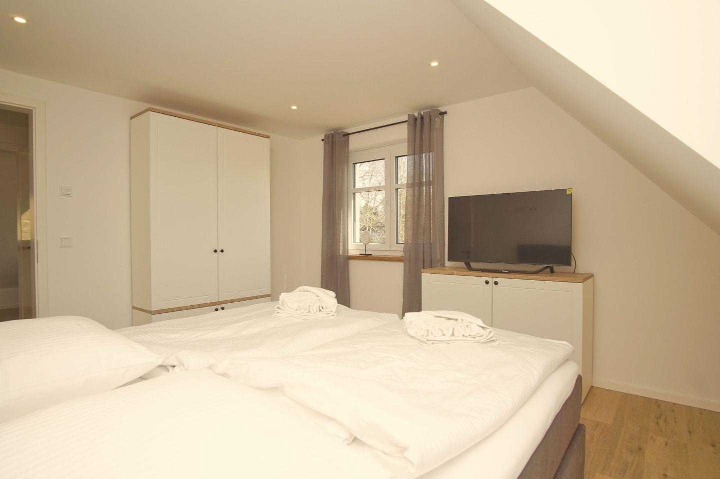 SCHLAFEN // im ersten OG zwei Schlafzimmer mit jeweils einem Doppelbett (ein Schlafzimmer mit zusätzlichem Flachbild-TV), ein Schlafzimmer mit zwei Einzelbetten, im DG offenes Schlafzimmer mit Doppelbett und Panoramafenster im Giebel ++
