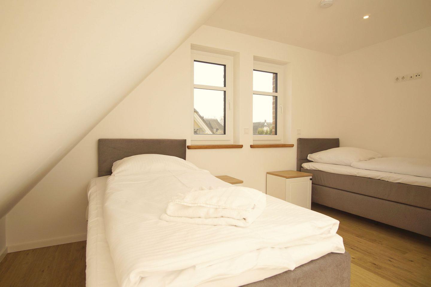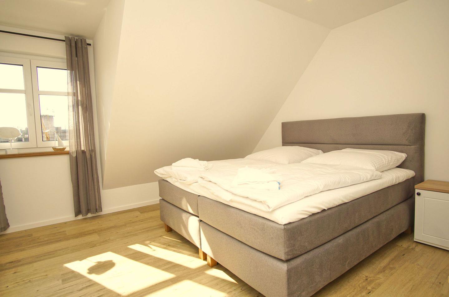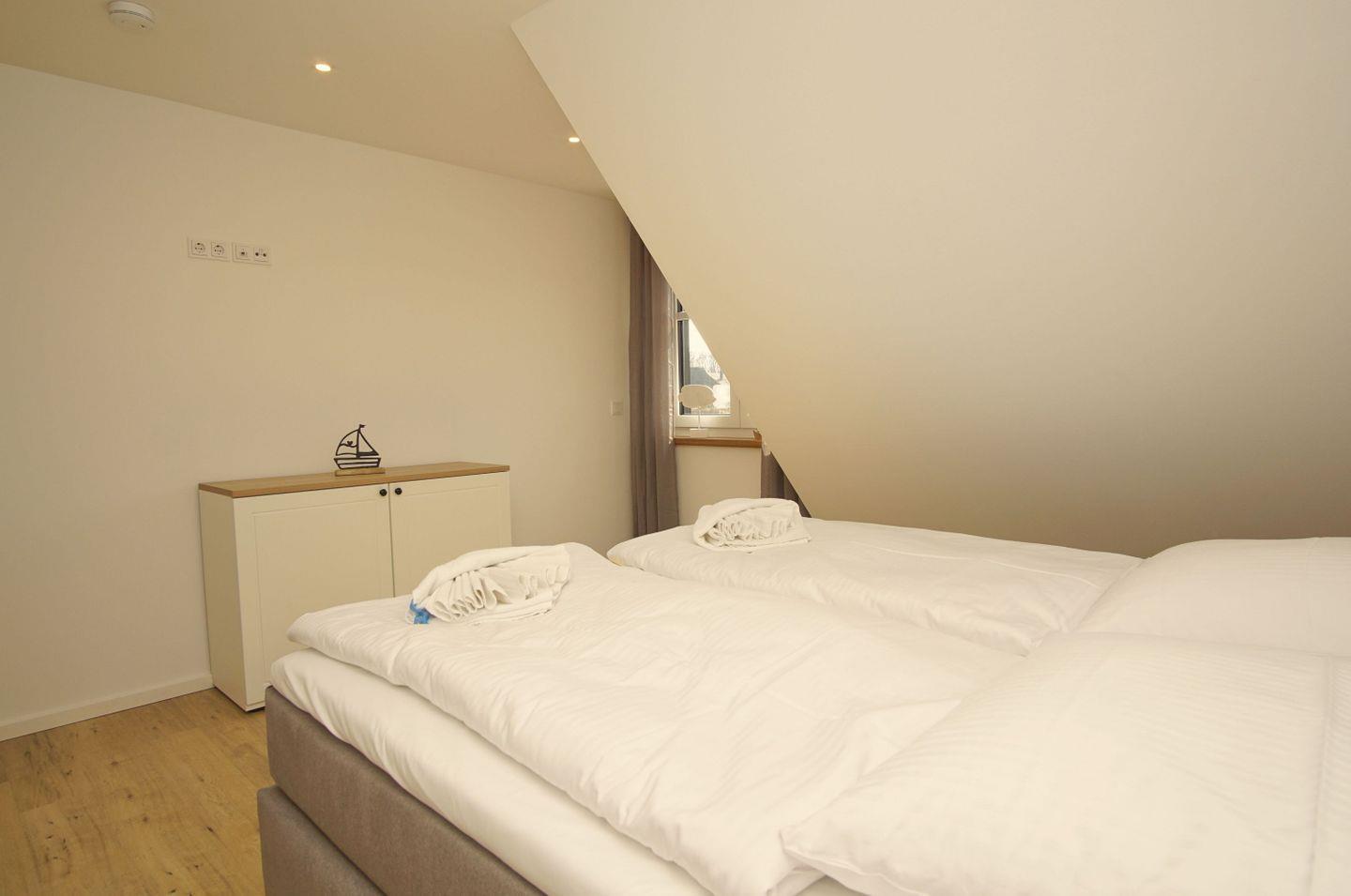 SCHLAFEN // im ersten OG zwei Schlafzimmer mit jeweils einem Doppelbett (ein Schlafzimmer mit zusätzlichem Flachbild-TV), ein Schlafzimmer mit zwei Einzelbetten, im DG offenes Schlafzimmer mit Doppelbett und Panoramafenster im Giebel ++