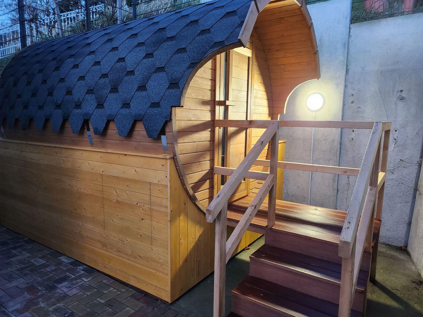 Wir bieten ultimatives Saunavergnügen in unserer Fasssauna auf dem Grundstück - ein besonderes Highlight für alle Gäste, die maximale Entspannung suchen.