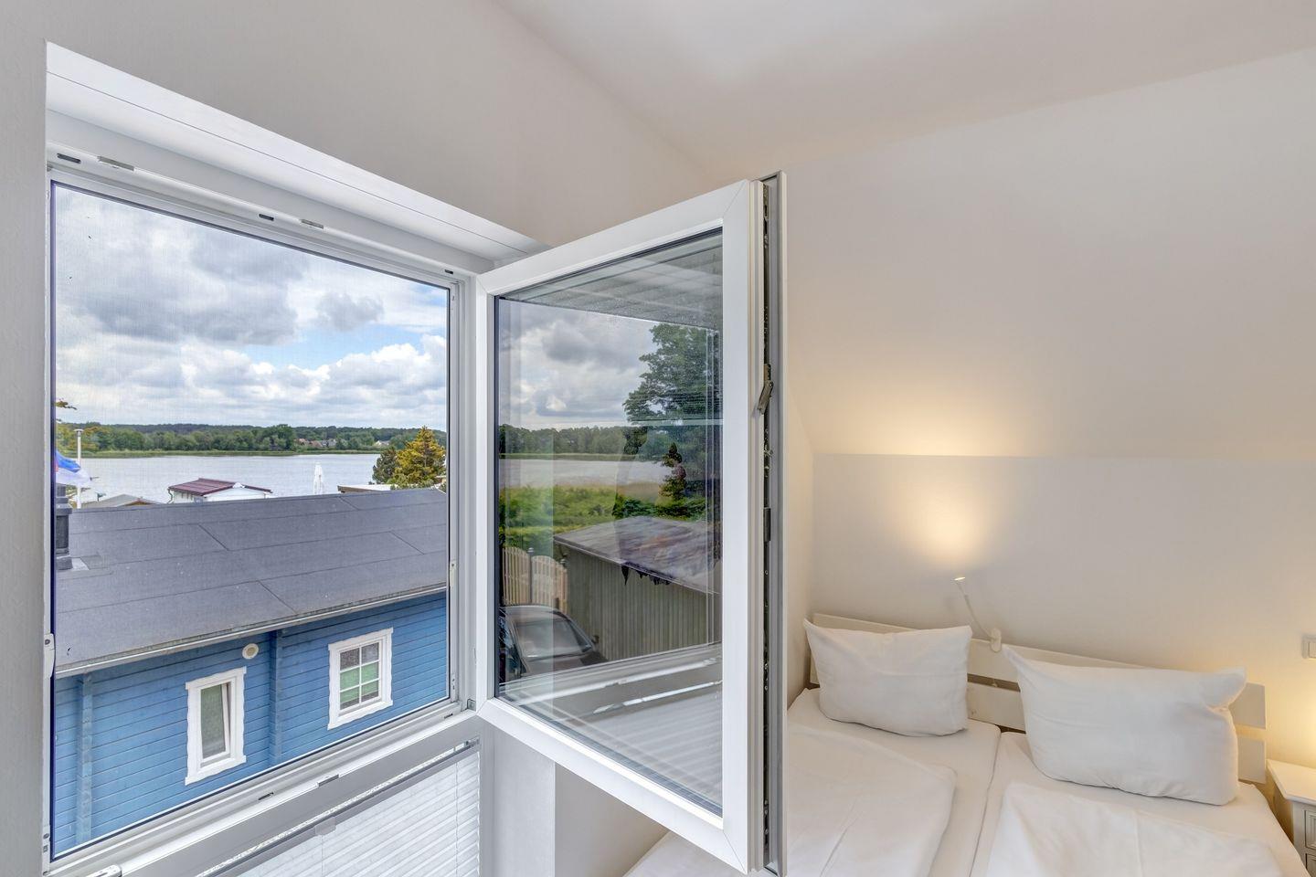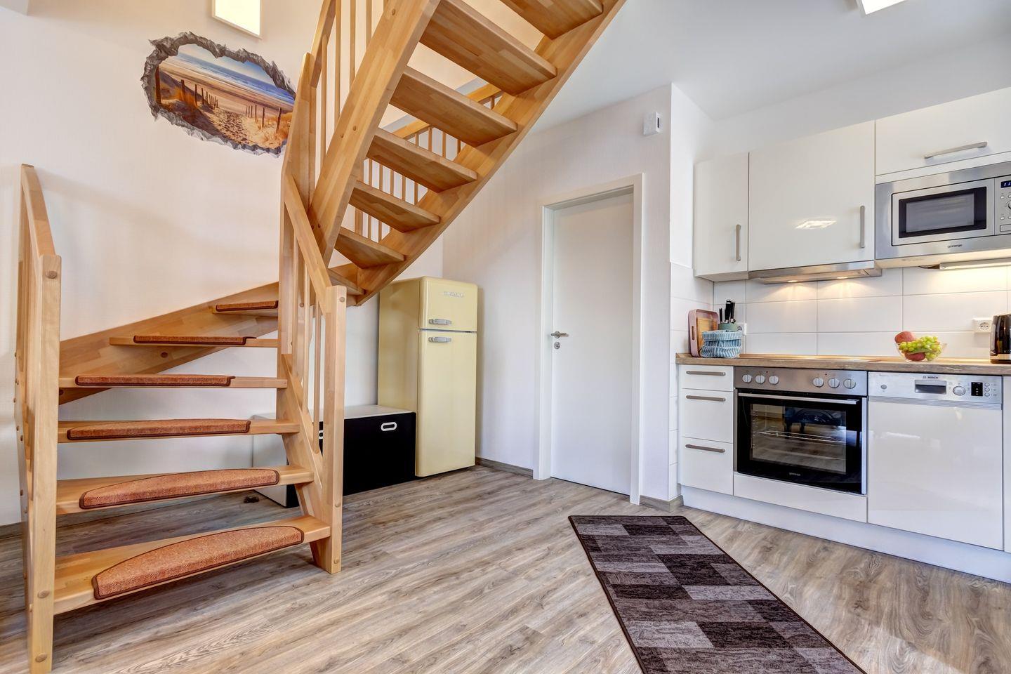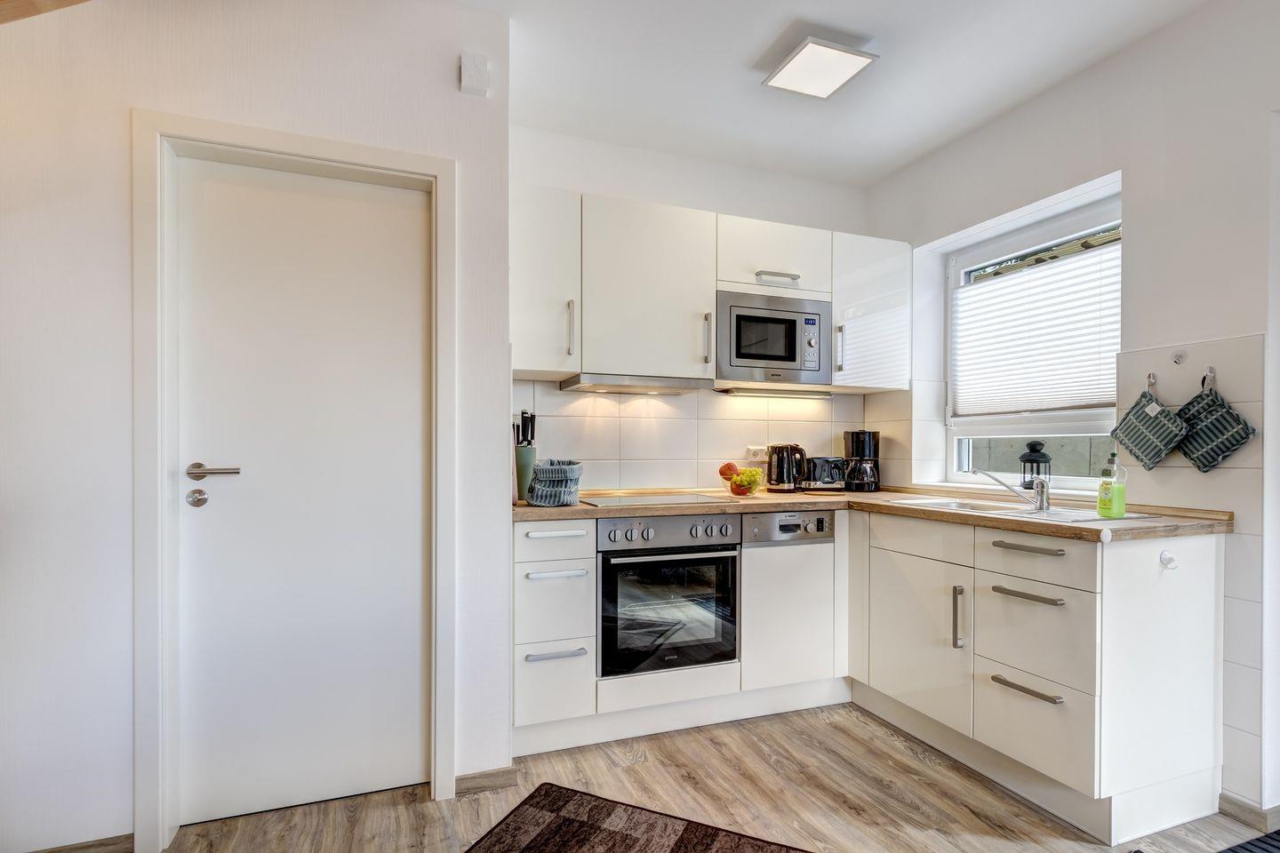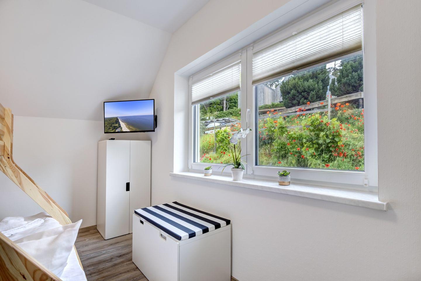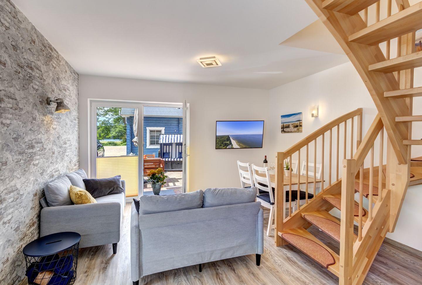 Genießen Sie den lichtdurchfluteten Wohn- und Essbereich mit einer gemütlichen Sitzgruppe, der Ihnen ein besonderes Urlaubsambiente bietet. Direkter Zugang zur Terrasse ermöglicht entspannte Momente im Freien. Die separate, modern und vollausgestattete Küche lässt keine Wünsche offen. Zwei vollwertige Schlafzimmer sorgen für erholsame Nächte: das erste mit komfortablem Doppelbett und das zweite mit einem Hochbett für drei Personen.