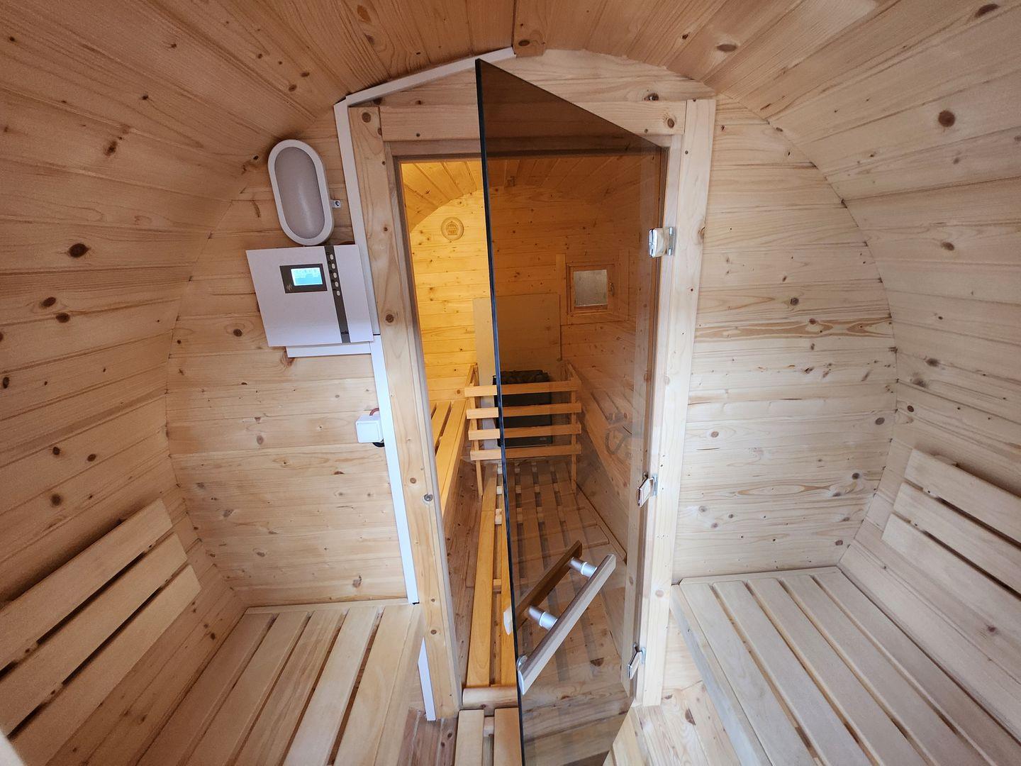 Wir bieten ultimatives Saunavergnügen in unserer Fasssauna auf dem Grundstück - ein besonderes Highlight für alle Gäste, die maximale Entspannung suchen.