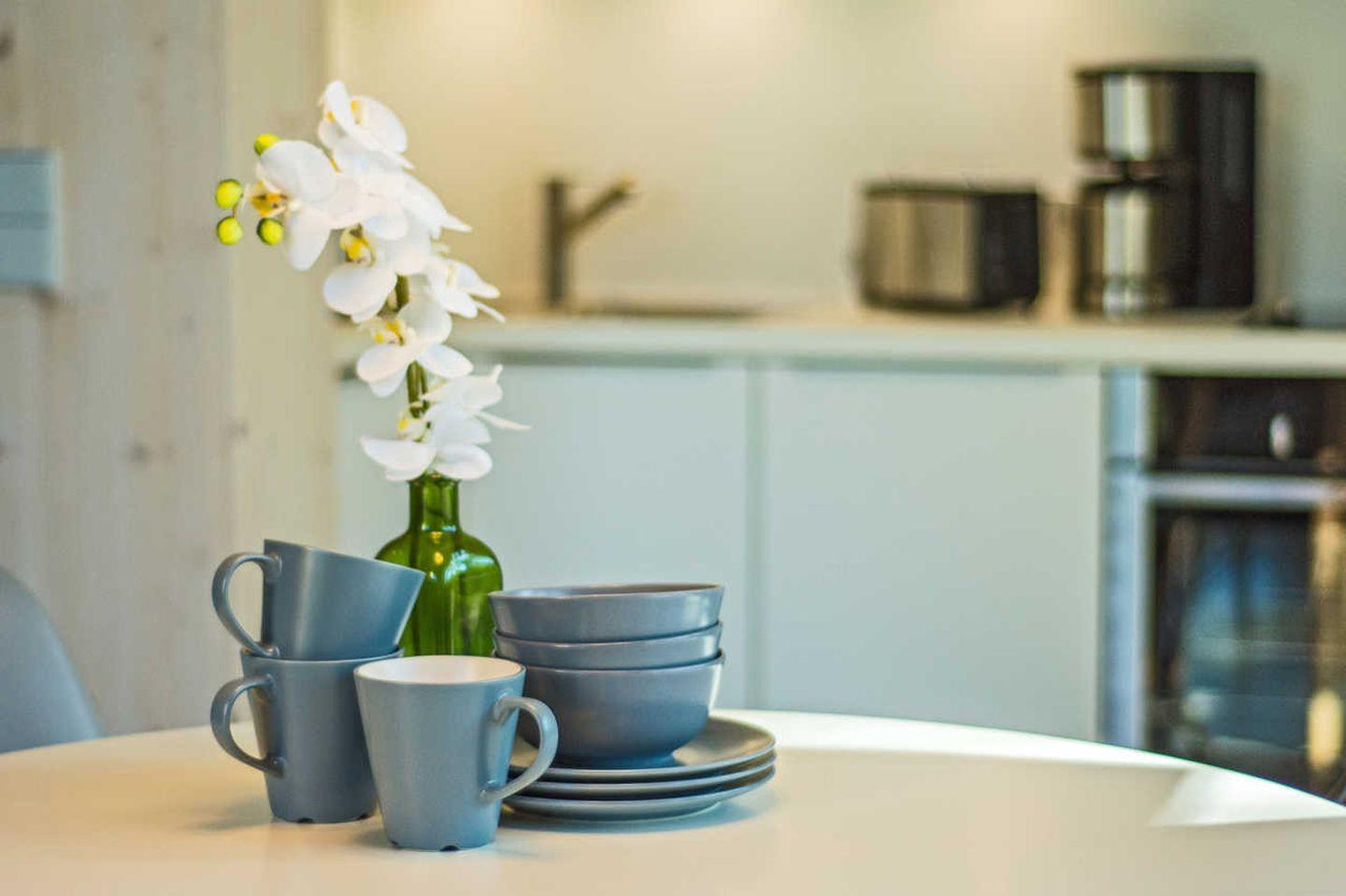 Die gut ausgestattete Küche lädt zum gemeinsamen Kochen ein. Das Menü genießen Sie bei einem Glas Wein und beim herrlichen Sonnenuntergang auf der großzügigen Terrasse.