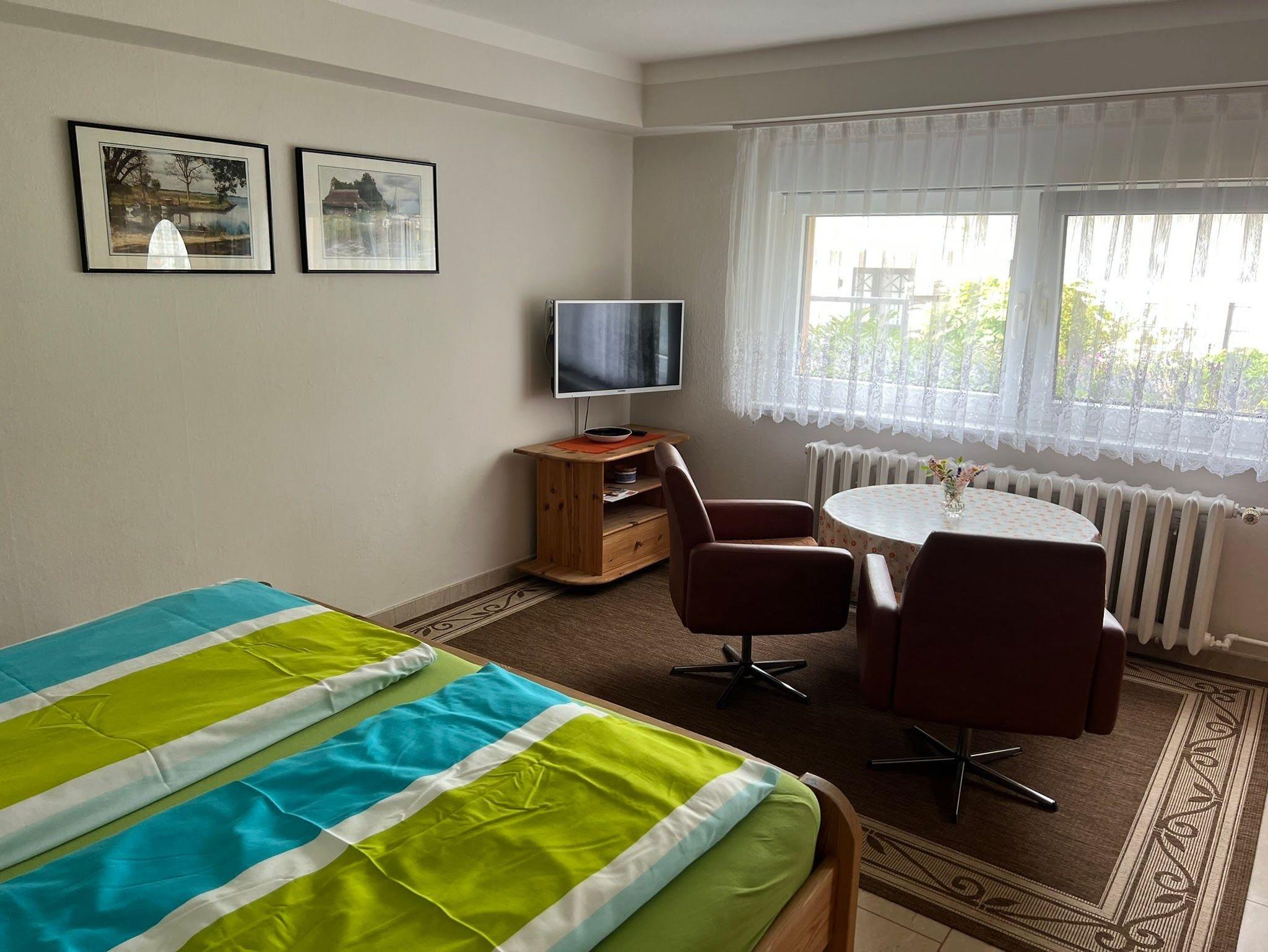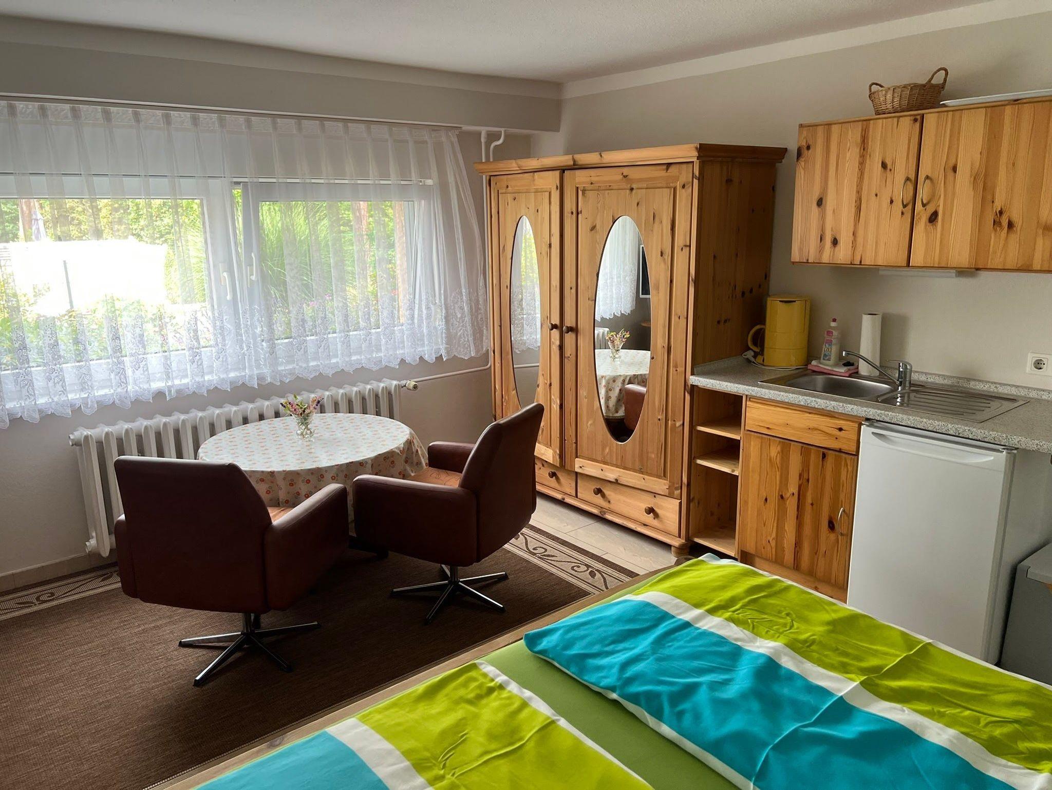 Das Ferienzimmer befindet sich ebenso wie die Ferienwohnung in Wohnhaus des Vermieters. Es ist gemütlich und zweckmäßig eingerichtet. Es verfügt über Doppelbett, eine kleine Teeküche und einen Fernseher. Die Bettwäsche ist inklusive. Handtücher bringen Sie bitte selbst mit.