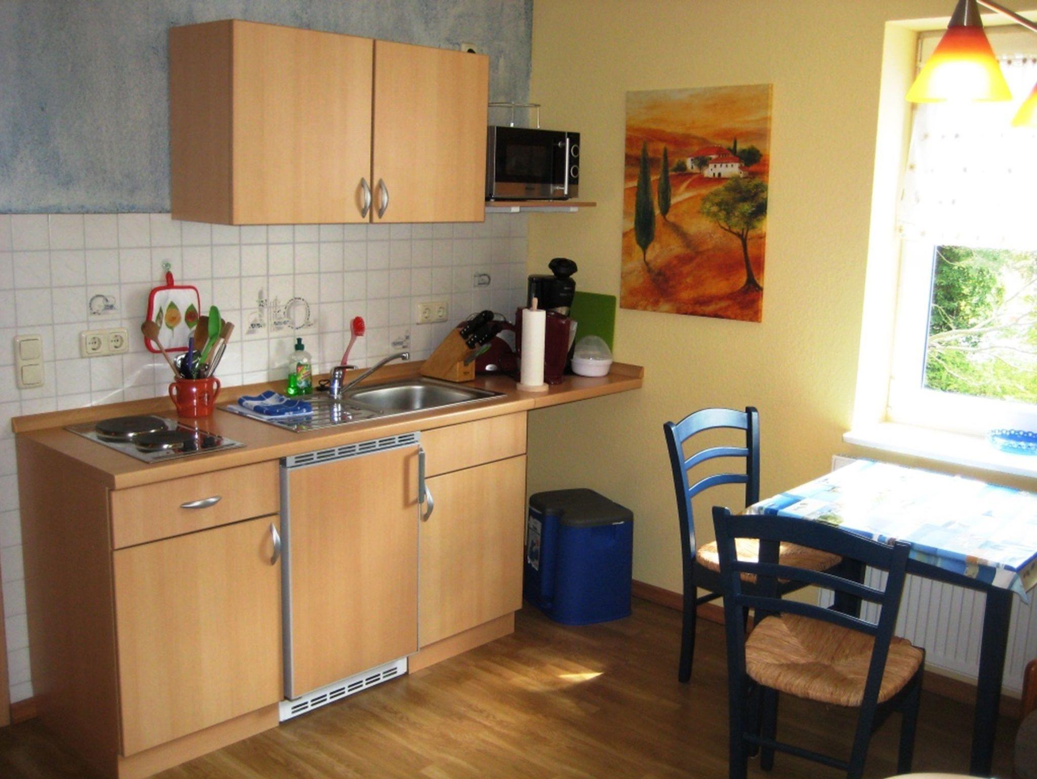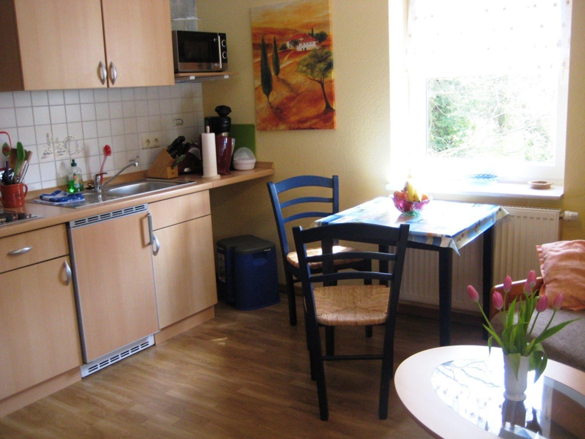 Unsere moderne Ferienwohnung liegt im Dachgeschoss eines im Jahre 2005 neu gebauten Hauses. Über einen separaten Aufgang erreichen Sie die 48 m² größe Wohnung mit einem Wohnraum mit Pantryküche, Essecke und Couchecke (Aufbettung für ein Kind bis 12 Jahre), Fernseher und Radio. Ein Schlafzimmer mit Doppelbett gehört ebenso zur Wohnung wie ein Bad mit Dusche und WC. Die Erstaustattung Bettwäsche ist inklusive.