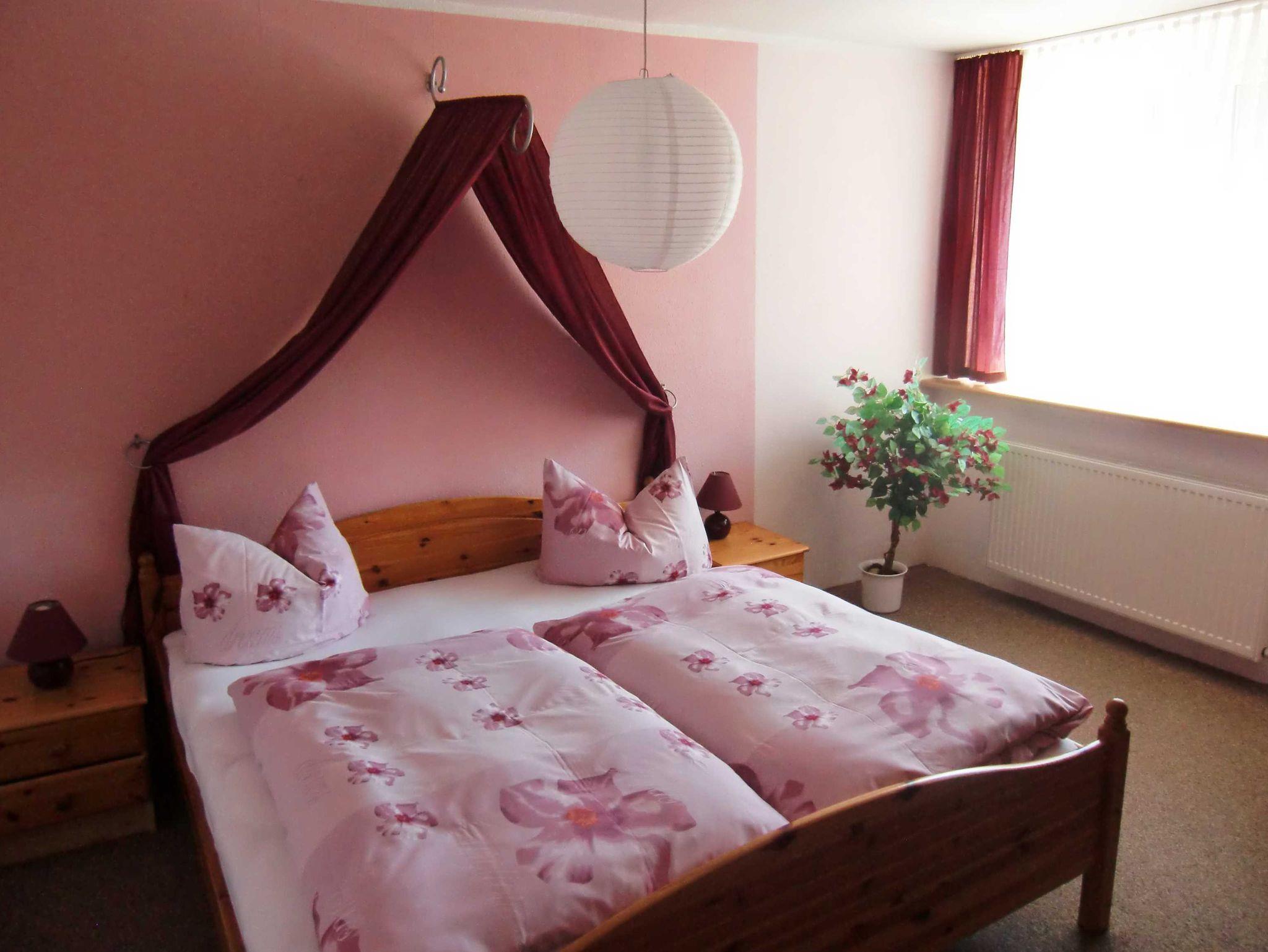 Elternschlafzimmer mit Doppelbett, Schrank und Sitzgelegenheit