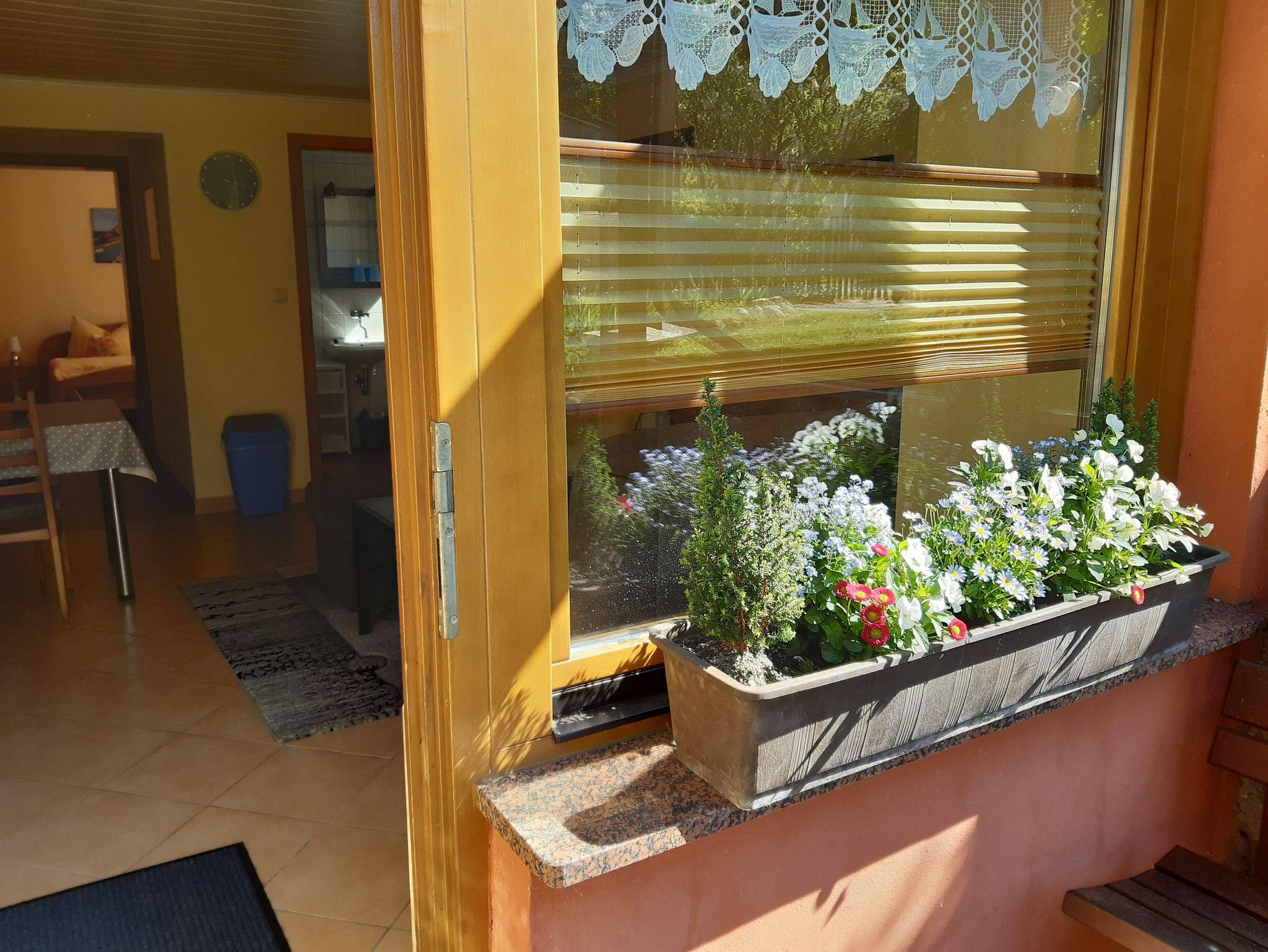 Die helle und freundliche Ferienwohnung liegt im Souterrain des Wohnhauses, ist liebevoll eingerichtet und hat einen separaten Eingang. Es verfügt über zwei Schlafräume mit Doppelbetten (Kinderbett und Hochstuhl kann gestellt werden), ein Wohnzimmer mit Essplatz und eine moderne Küchenzeile mit Backofen und Geschirrspüler. Davor befindet sich eine Terrasse mit Möbeln. Ein Parkplatz und ein Fahrradcarport befindet sich am Haus.Eine Sitzecke im Freien mit Kamin und Grill lädt zum abendlichen Verweilen ein. Die Erstausstattung Bettwäsche ist inklusive, Handtücher können Sie für einen Aufpreis dazu buchen (5,00 Euro p.P.) Kostenloses WLAN in der Ferienwohnung.