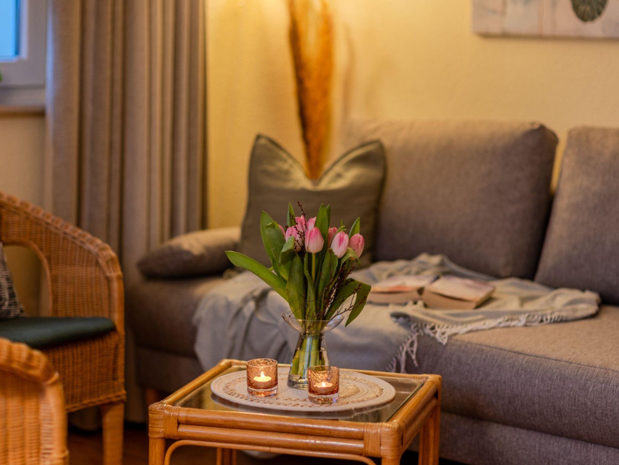 Ein gemütliches Wohnzimmer mit dazugehöriger Leseecke, kuschelige Betten mit bequemen und allergiker-freundlichen Kaltschaummatratzen, ausreichend Stauraum für ihre Kleidung, ein geräumiges Badezimmer sowie eine voll ausgestattete Markeneinbauküche ? dies sind nur einige Aspekte unser Dachgeschoss-Ferienwohnung, die für ein behagliches Ambiente sorgen.