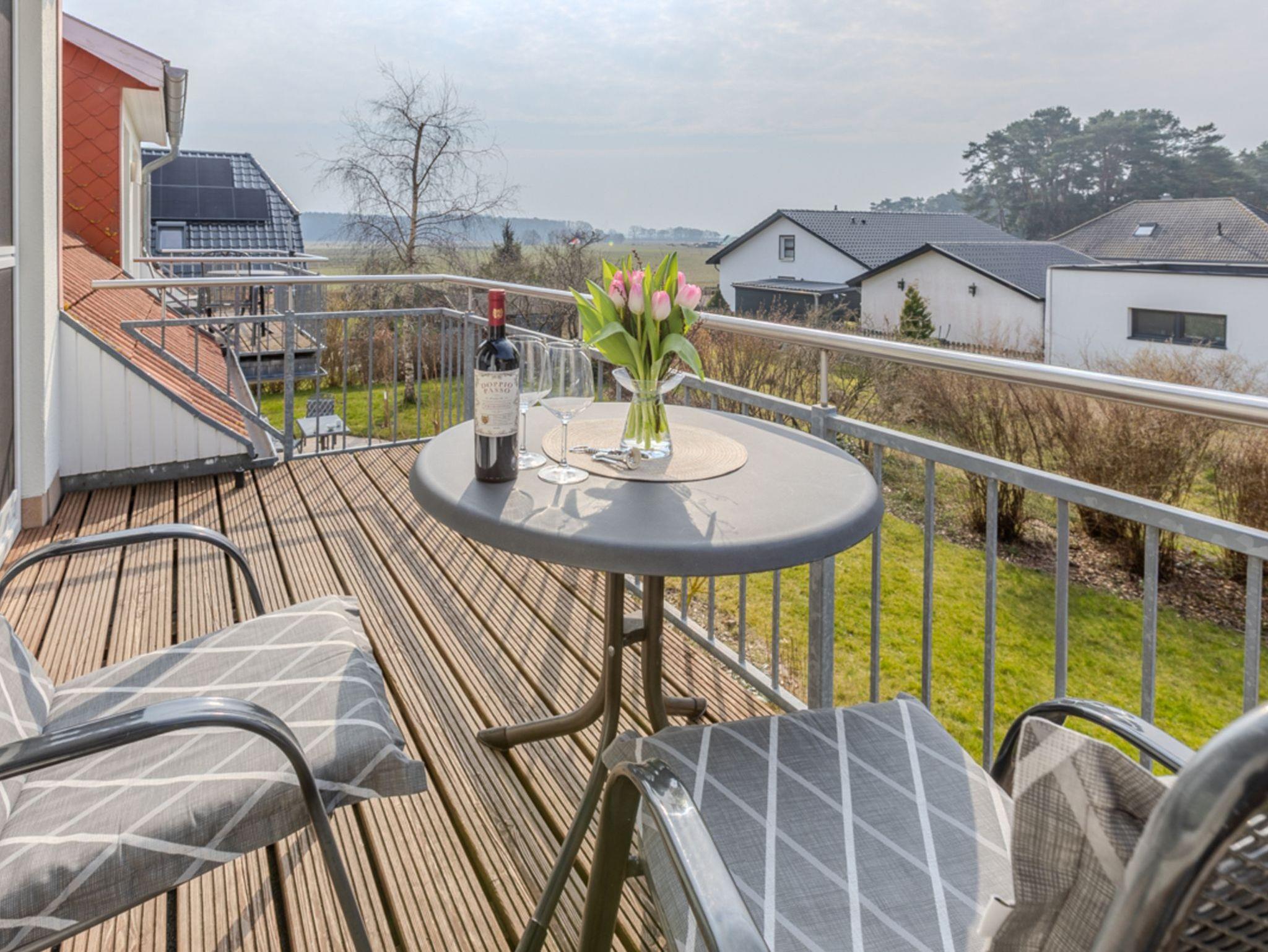 Moderne Dachgeschosswohnung auf Usedom mit Balkon und Blick auf das Achterwasser, nahe Ostseestrand und Radwegen.