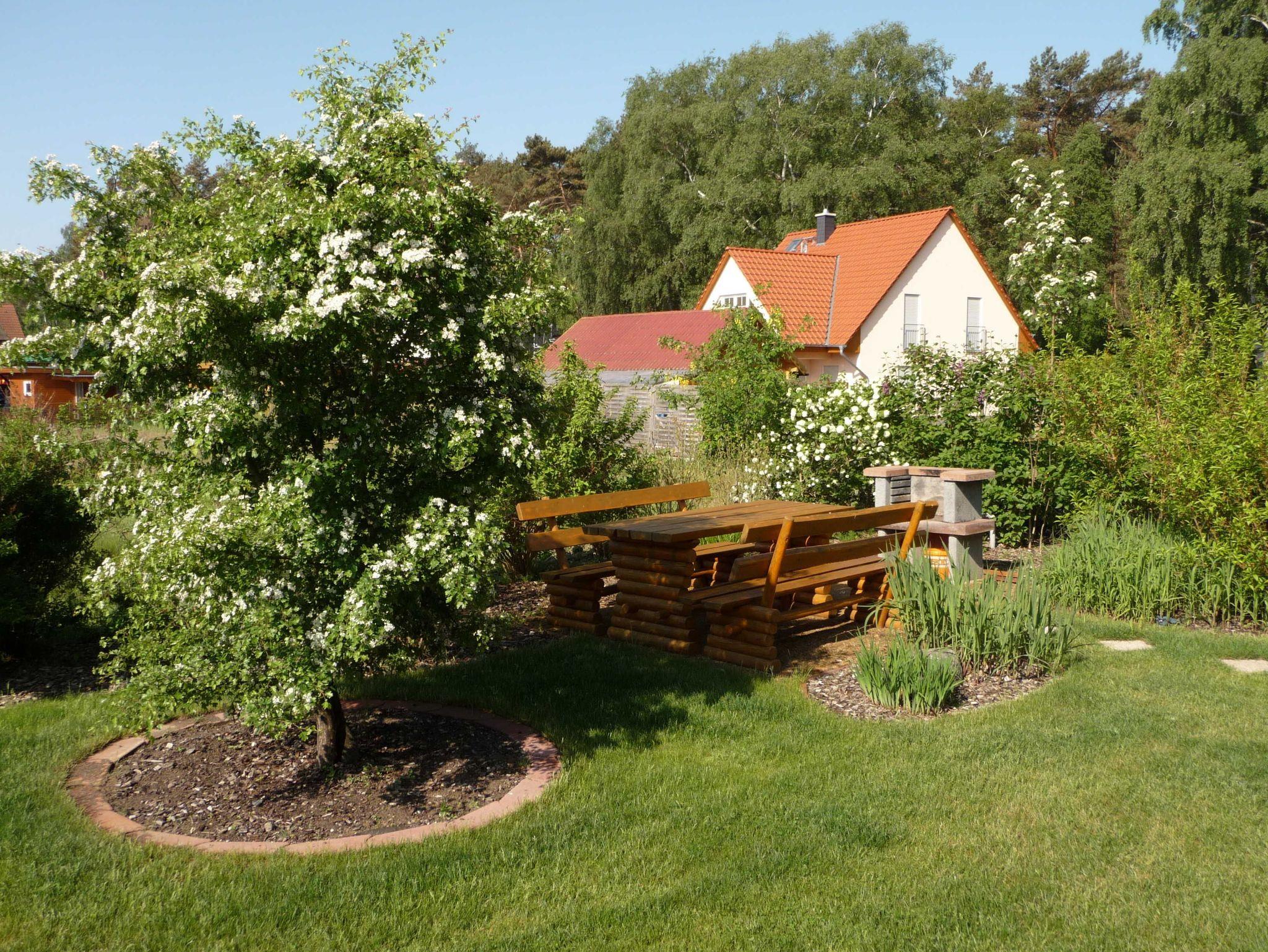 Zu jeder Wohnung gehört ein PkW-Stellplatz, welcher sich unmittelbar auf dem Grundstück befindet. Im Garten steht ein gemütlicher, von Schilf umsäumter, Grillplatz mit Grillkamin und einer geräumigen Tischgruppe allen Gästen zur gemeinschaftlichen Nutzung zur Verfügung.