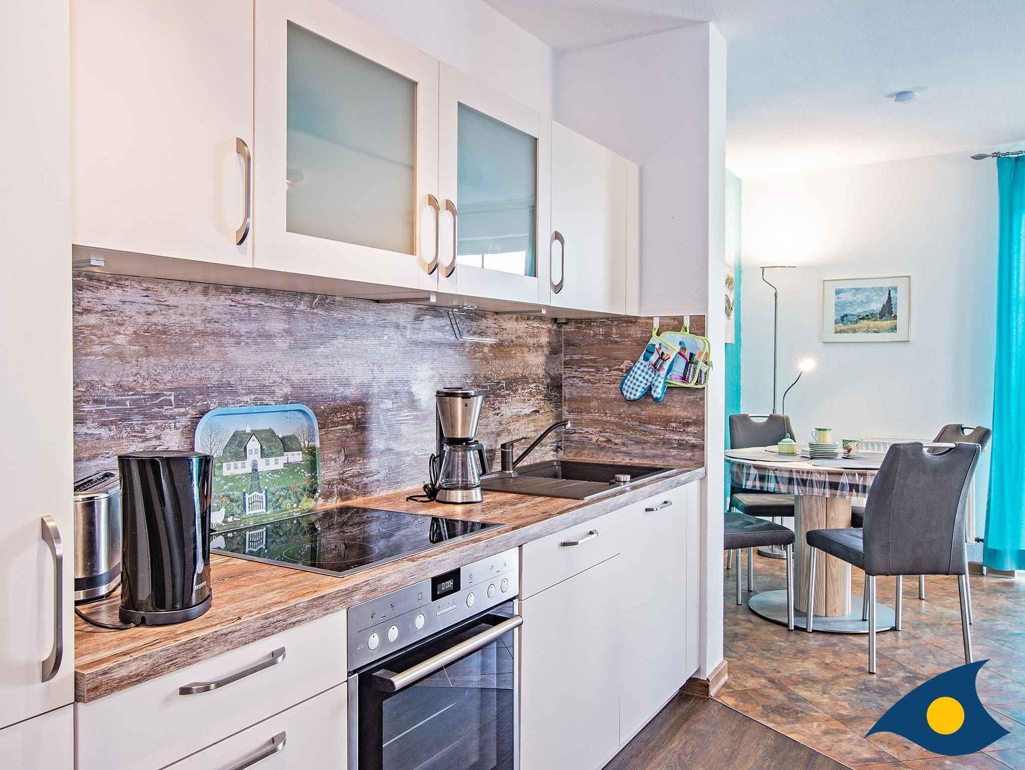 großzügigen Wohn-/Essbereich mit Schlafsofa (1,80mx2m) sowie eine hochwertige Küche.