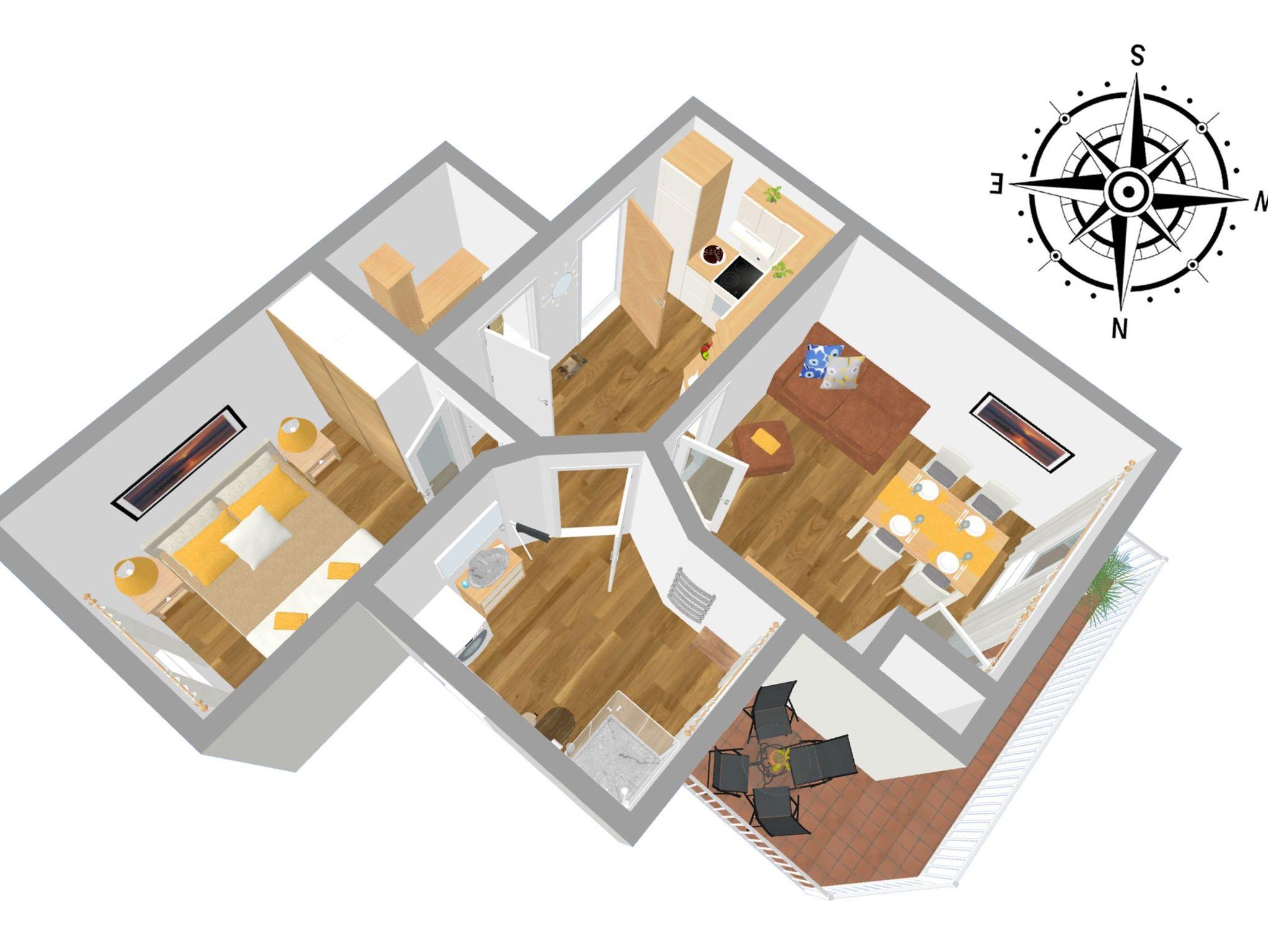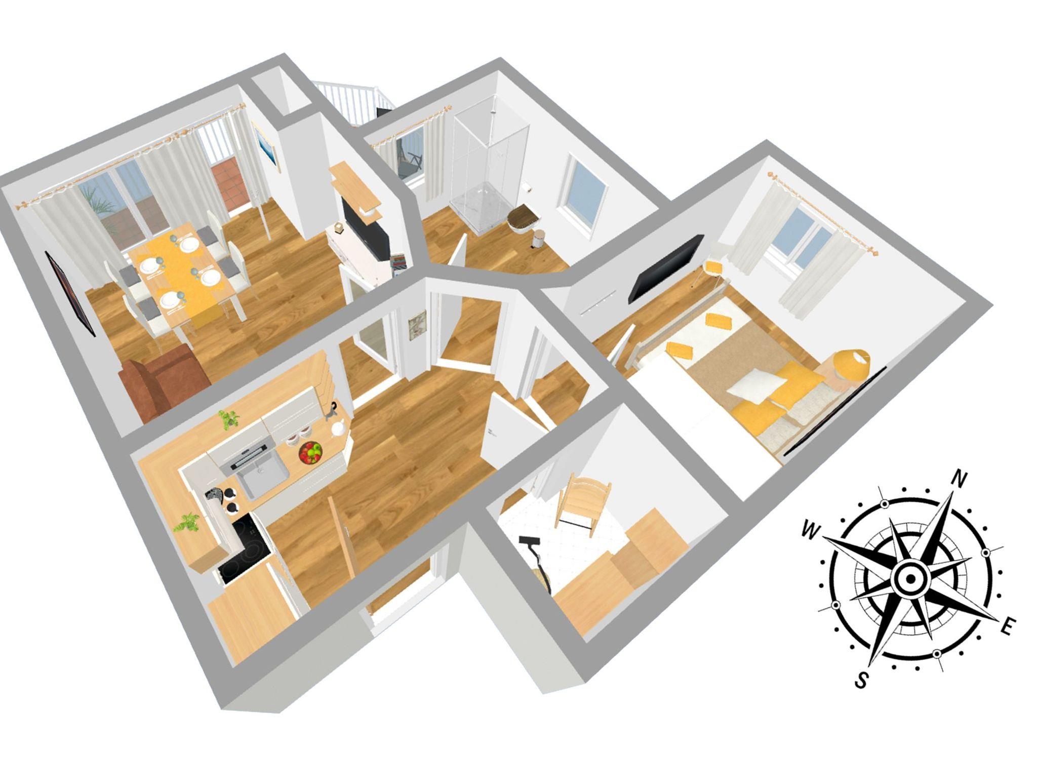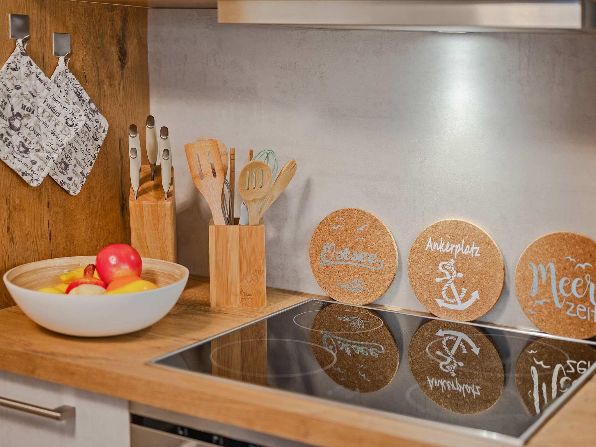 Die moderne 2- Raum Ferienwohnung befindet sich im 1. Obergeschoß der Villa Maria-Gabriele. Die Wohnung wurde im Jahr 2022 komplett modernisiert und mit viel Liebe zum Detail eingerichtet. Auf 44 qm erwartet sie ein gemütliches Wohnzimmer mit einer ausziehbaren Schlafcouch (Aufbettung für 3.+4. Pers. 1,80 x 2,00m), Smart- TV sowie einem Esstisch. Vom Wohnzimmer aus gelangen Sie auch auf den möblierten Balkon in Nord- West Lage. Die voll ausgestattete Küche ist mit Spülmaschine, Backofen, Ceran- Kochfeld, Mikrowelle, Kühlschrank mit Gefriermöglichkeit, Wasserkocher, Toaster und Kaffeemaschine ausgestattet und lässt keine Wünsche offen. Das Schlafzimmer verfügt über ein Doppelbett (1,80 m x 2,00 m), Smart-TV und einem Kleiderschrank. Das maritime Badezimmer ist mit Dusche, WC, Föhn und Waschmaschine ausgestattet. Ein Kinderbett, Kinderhochstuhl sowie Kindergeschirr stehen Ihnen kostenfrei zur Verfügung.