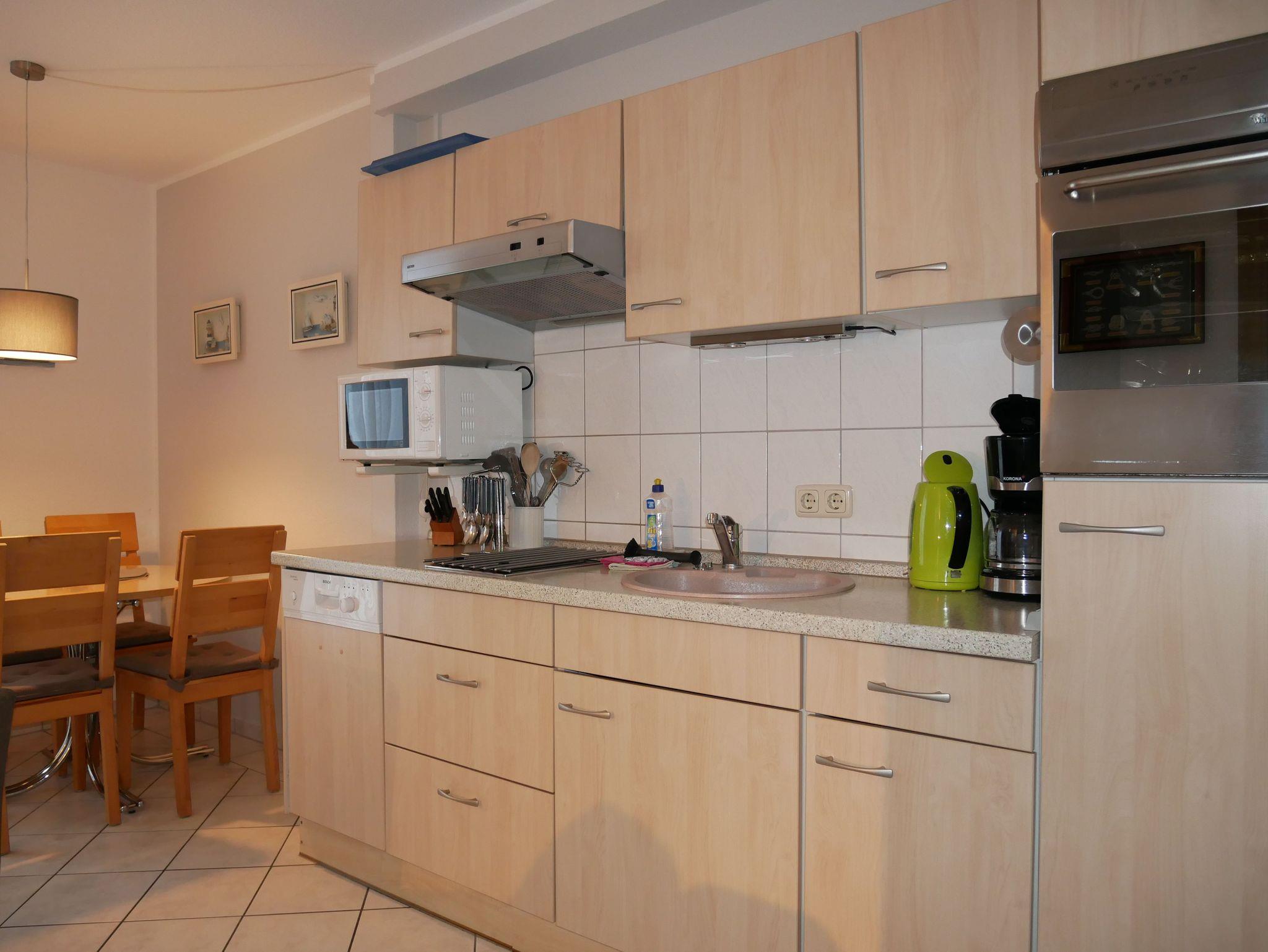 Im Wohnzimmer sorgt eine ausziehbare Schlafcouch für zwei zusätzliche Schlafplätze. Für Unterhaltung ist ebenfalls gesorgt: Es gibt einen TV im Schlafzimmer, einen Smart-TV im Wohnzimmer, eine Stereo-Anlage mit Radio und CD-Player. Die Küche ist voll ausgestattet mit Geschirrspüler, Cerankochfeld, Elektro-Ofen, Kühl-/Gefrierschrank, Mikrowelle, Wasserkocher, Kaffeemaschine und Toaster. Für die Wäsche steht Ihnen eine Waschmaschine zur Verfügung.