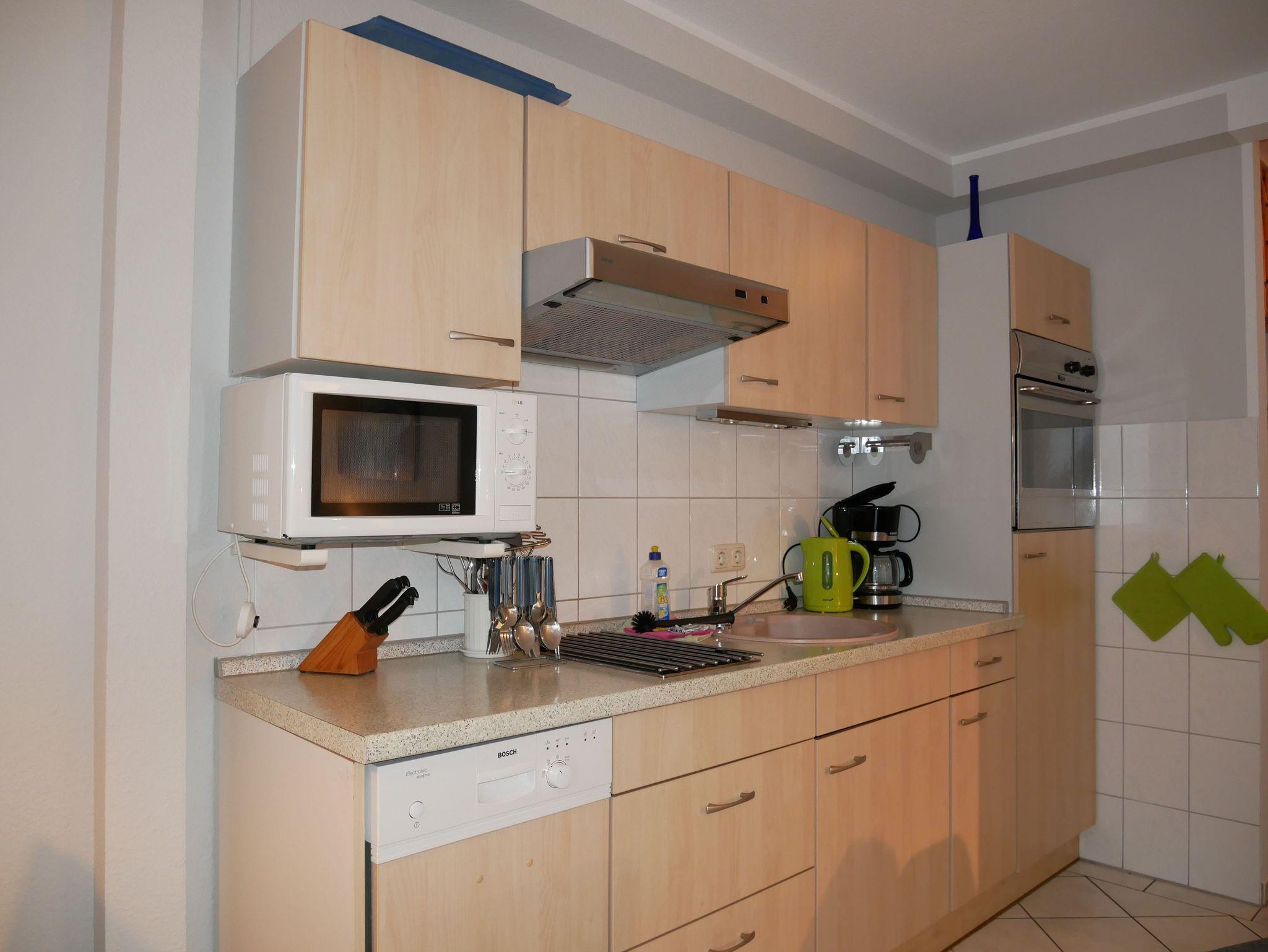 Die Wohnung verfügt über ein Schlafzimmer mit einem bequemen Doppelbett sowie ein kombiniertes Wohn- und Esszimmer mit einer Küchenzeile, in der Sie alles finden, was Sie für die Selbstversorgung benötigen. Das Badezimmer ist mit einer Badewanne und WC ausgestattet.