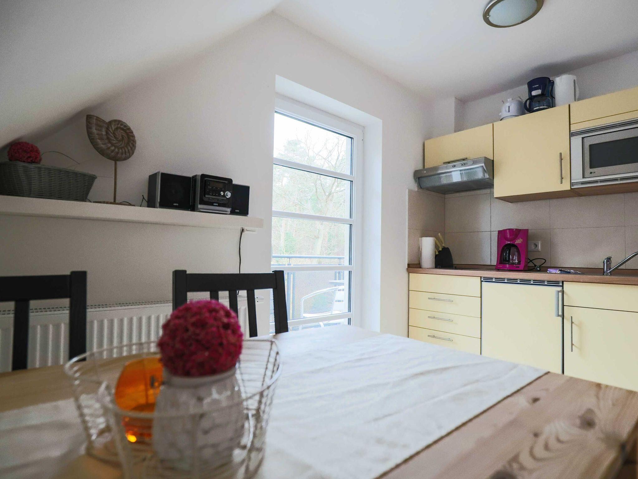 Die Ferienwohnung Herzmuschel im Dachgeschoss eines Ferienhauses mit 2 Wohneinheiten verfügt über 2 Schlafzimmer und bietet Platz für bis zu 4 Personen. Die Ferienwohnung verfügt über einen Wohn- und Essbereich , die offene Küche ist komplett ausgestattet. Ein Badezimmer mit bodengleicher Dusche und WC ist auch vorhanden. Die Ferienwohnung hat einen eigenen Balkon mit Grill und Sitzgelegenheiten.