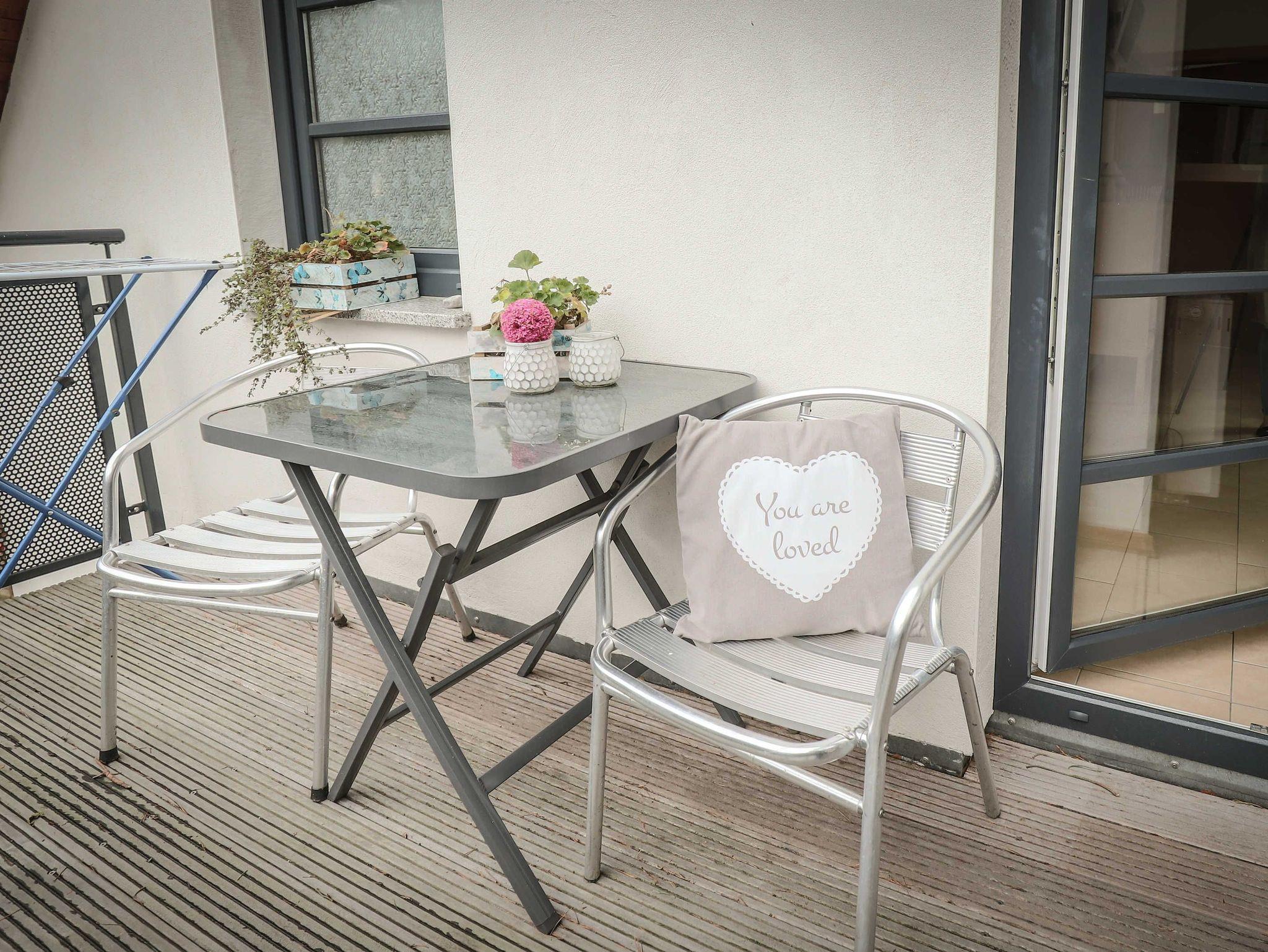 Vom Wohnzimmer aus treten Sie auf den Balkon in Richtung Südwest. Das Bad ist mit Dusche und WC ausgestattet.
