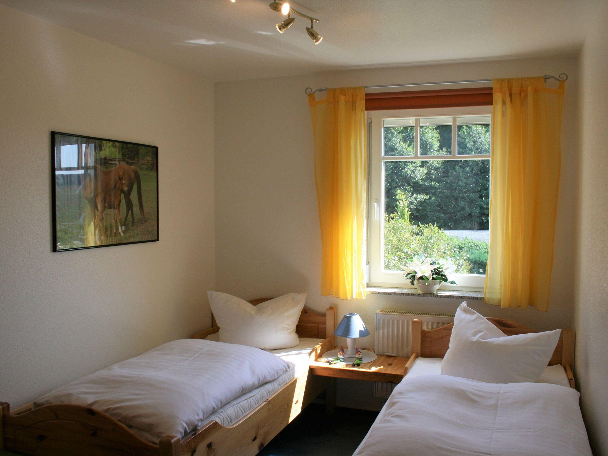 Von den beiden Schlafzimmern verfügt eines über ein großes Doppelbett, das zweite über zwei Einzelbetten. Rollläden zur Verdunkelung sind vorhanden. Das geräumige Duschbad ist maritim eingerichtet. Das Haus verfügt über kostenloses, schnelles Internet und einen schönen Garten mit Obstbäumen, Wäschespinne und Grillmöglichkeit, der von den Gästen genutzt werden kann. Auch ein kostenloser Pkw-Stellplatz und ein abschließbarer Fahrradschuppen sind vorhanden.