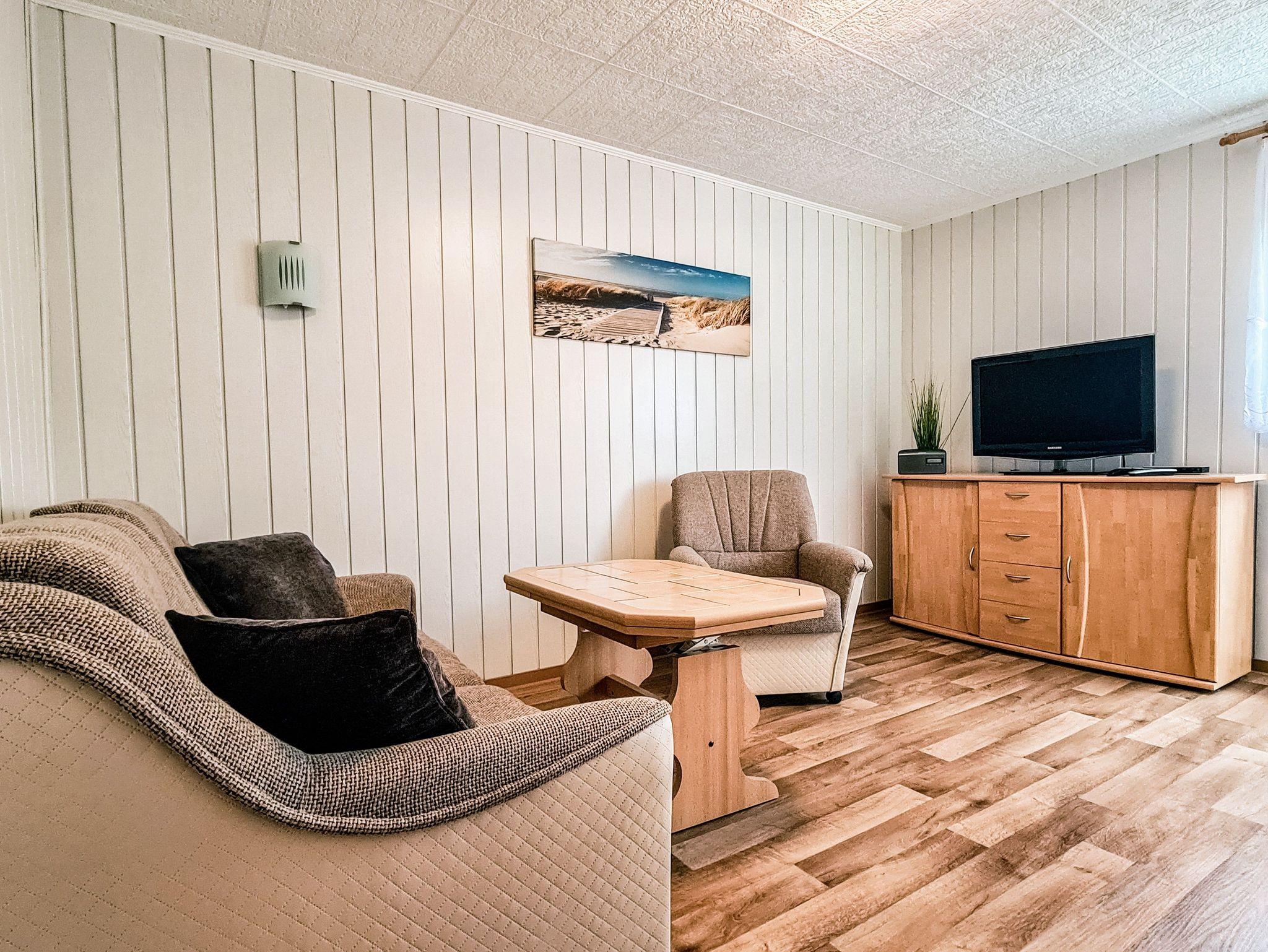 Der Bungalow ist 33qm groß und mit einem Wohnraum, Schlafzimmer, Küche und Bad ausgestattet.
