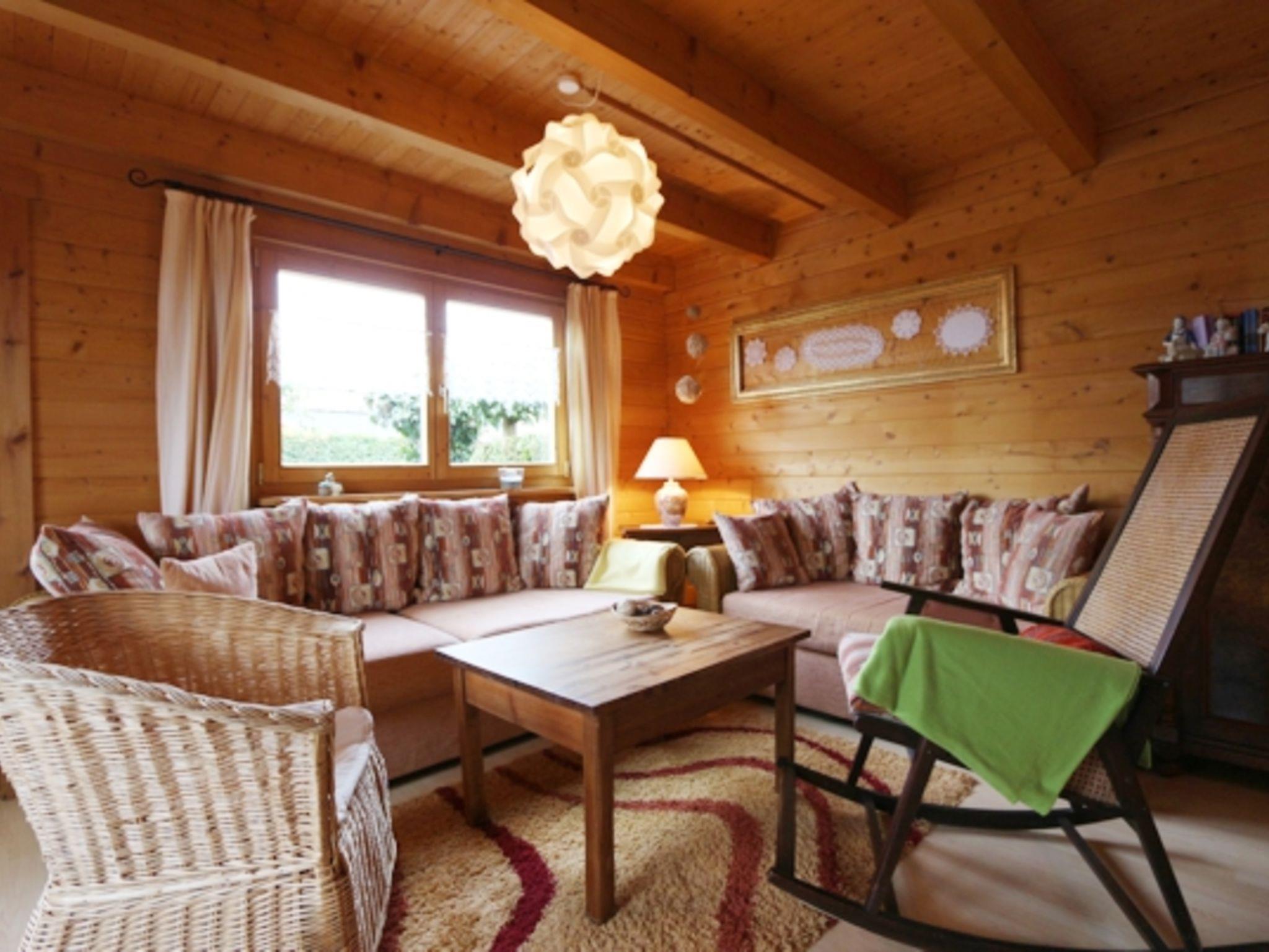 Das Blockbohlen-Ferienhaus 1 ist gemütlich wie folgt ausgestattet und befindet sich am Grundstücksende: