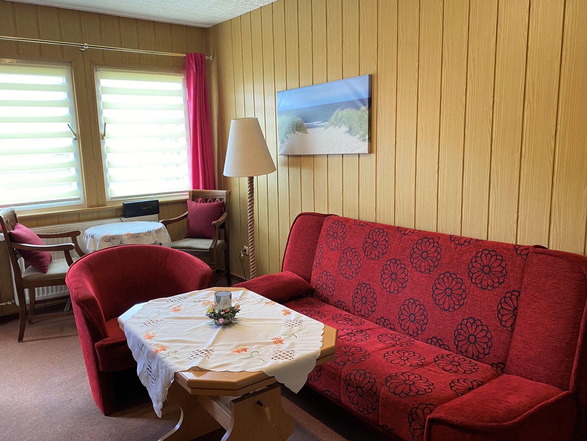 - 1 Wohnraum mit Coch und Sessel, Sideboard, TV/Radio,
