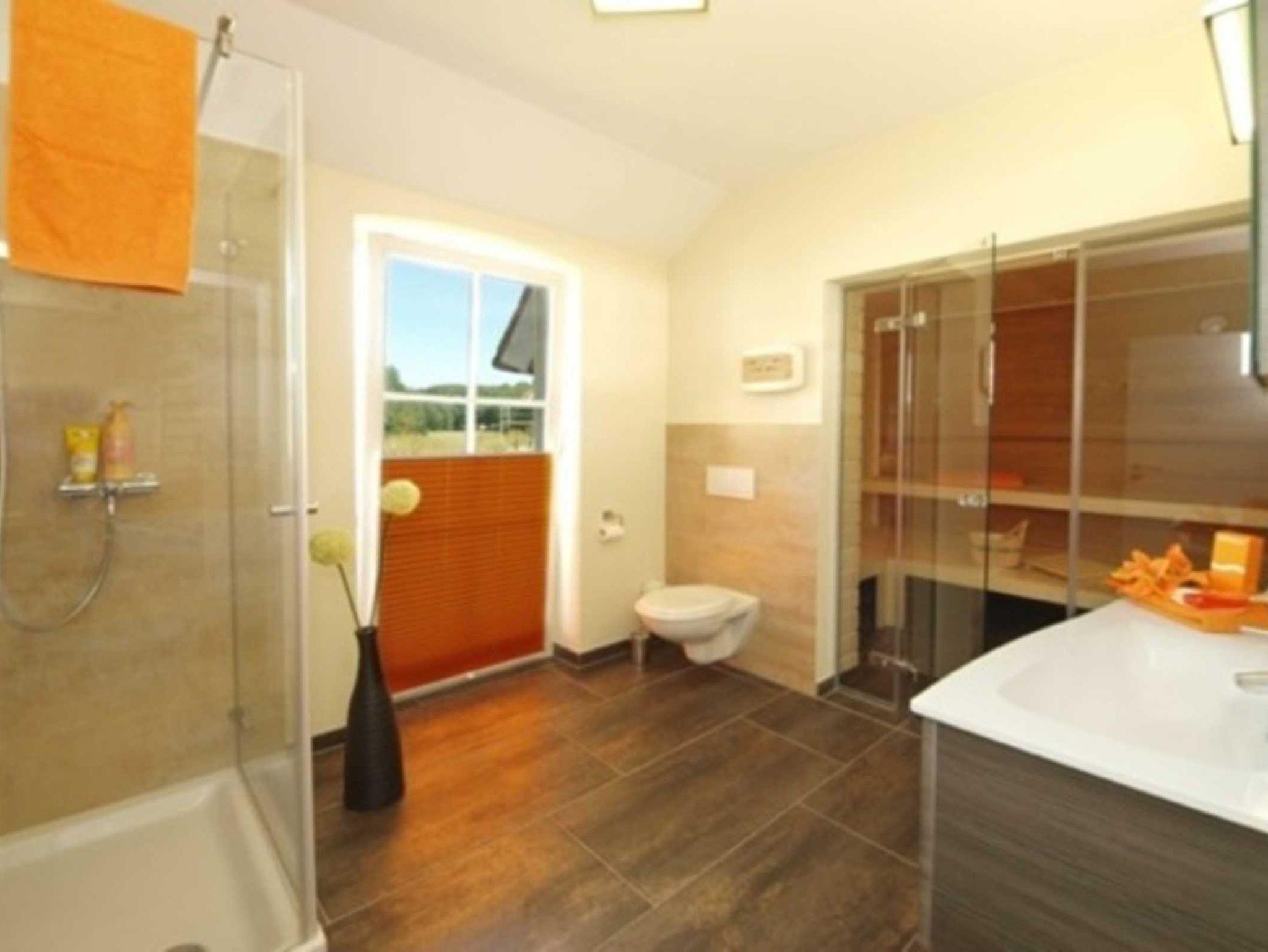 Das Haus verfügt über ein großes Badezimmer mit Dusche und Badewanne ? ideal für entspannte Wellnessmomente ? sowie ein zweites Badezimmer mit Dusche und einer eigenen Sauna, die besonders an kühleren Tagen für wohlige Wärme sorgt.