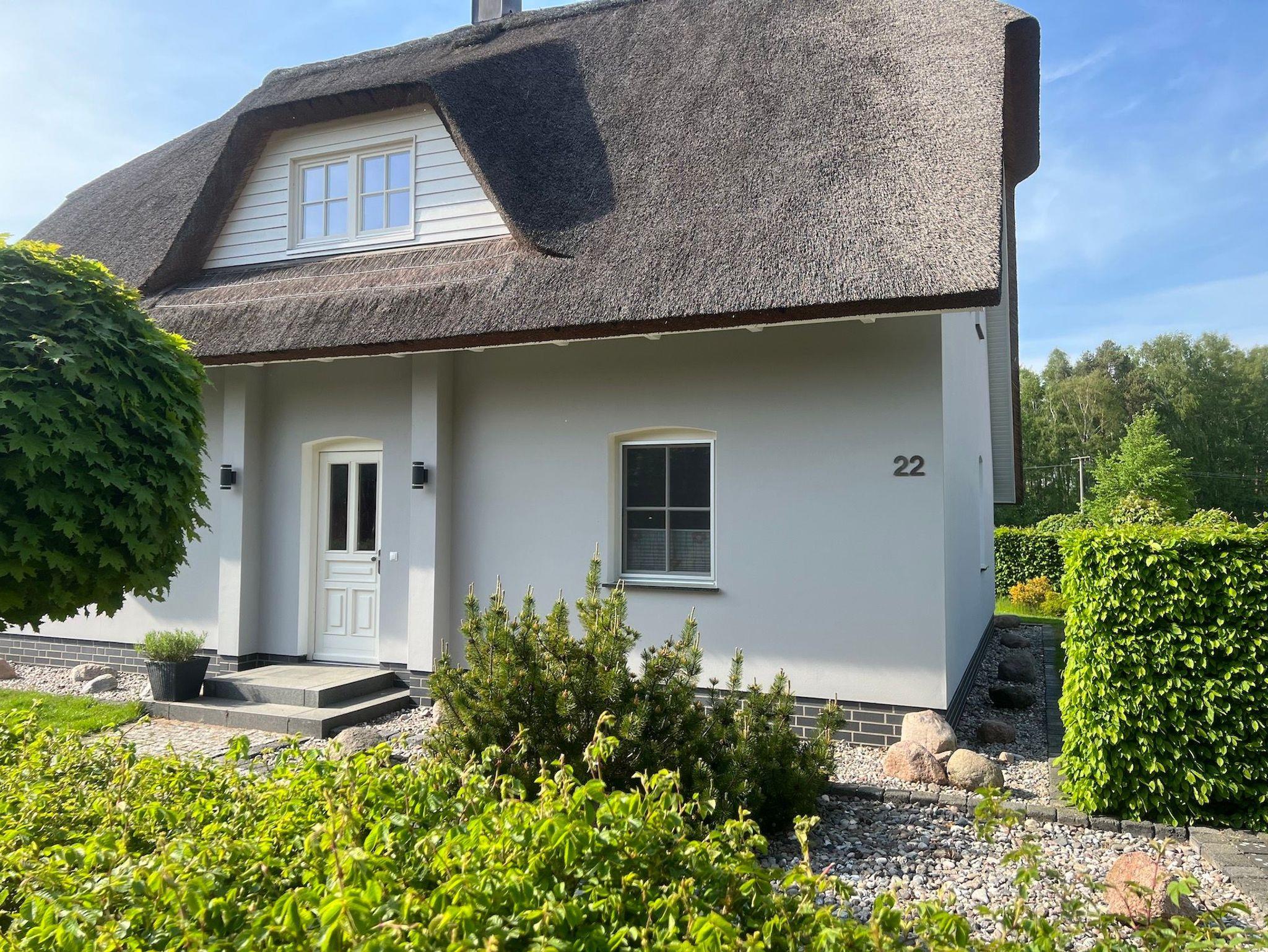 Modernes reetgedecktes Ferienhaus mit Sauna, Kamin und Sonnenterrasse nahe Ostseestrand in Loddin.