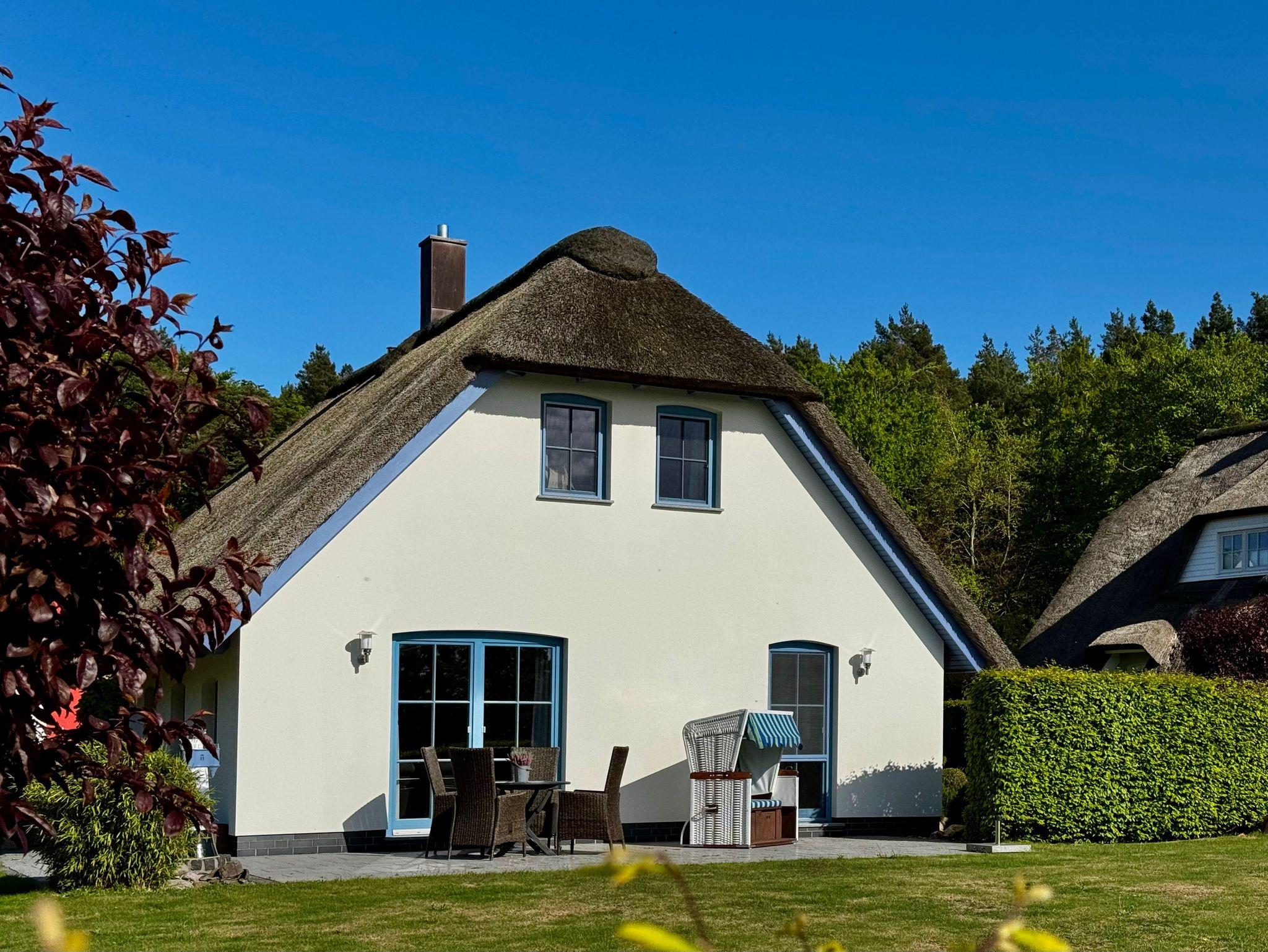 Charmantes Ferienhaus mit Reetdach, Kamin und großer Terrasse nahe Ostseestrand.